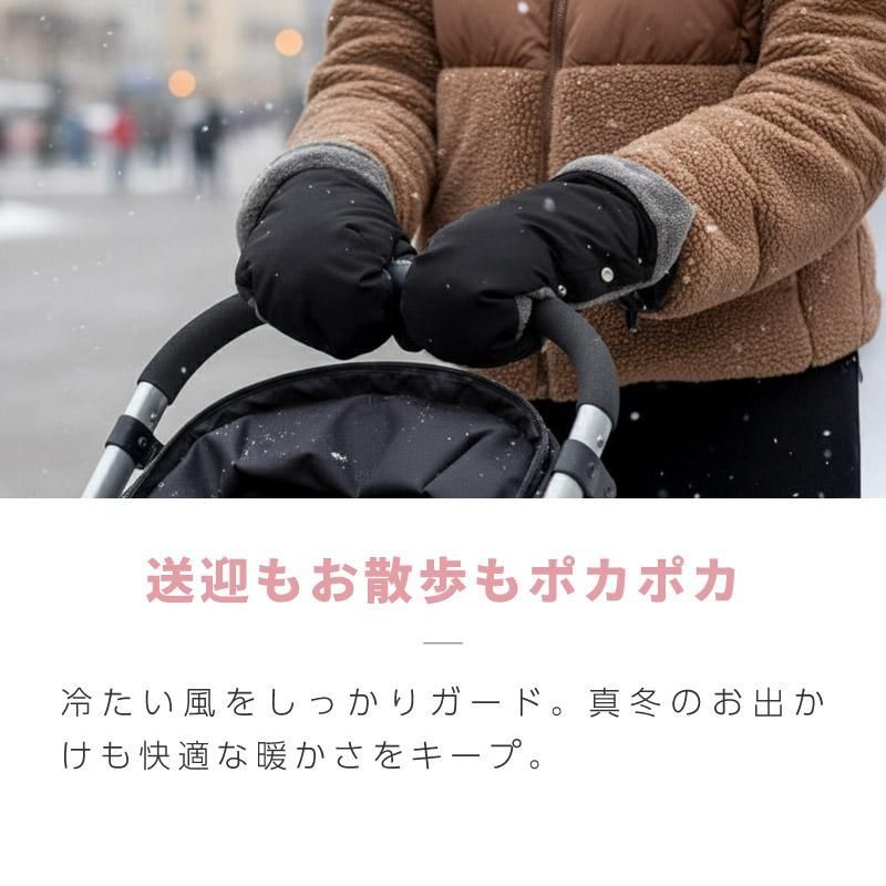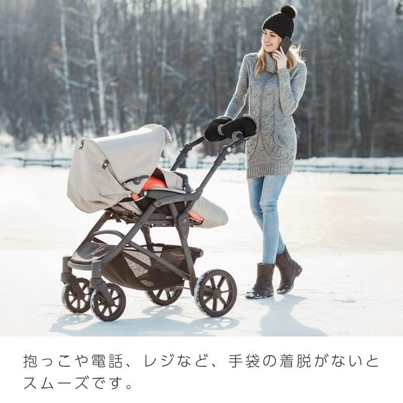 ベビーカーのハンドルに固定できる手袋です。