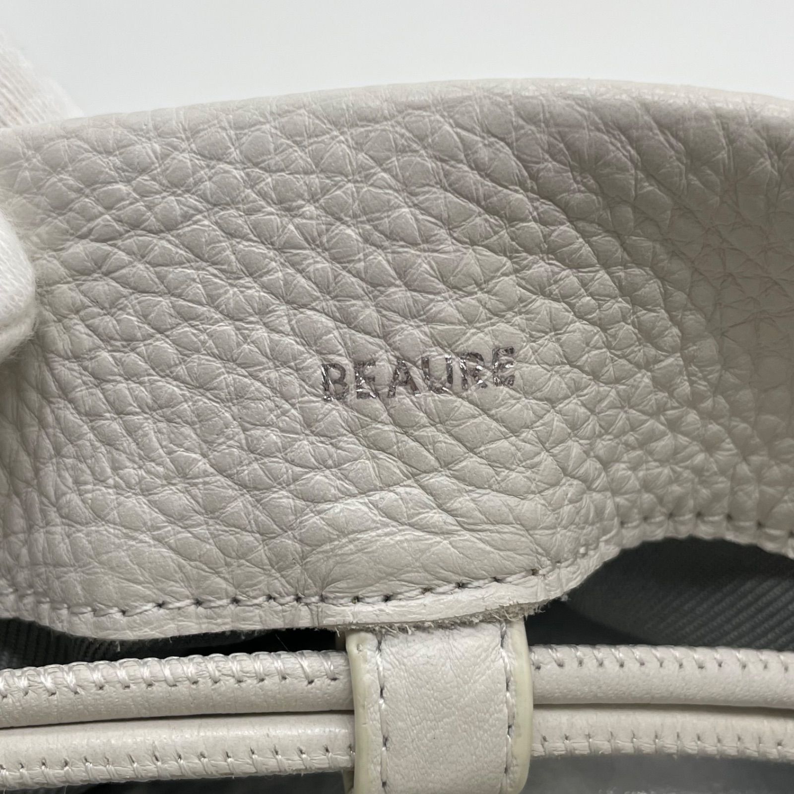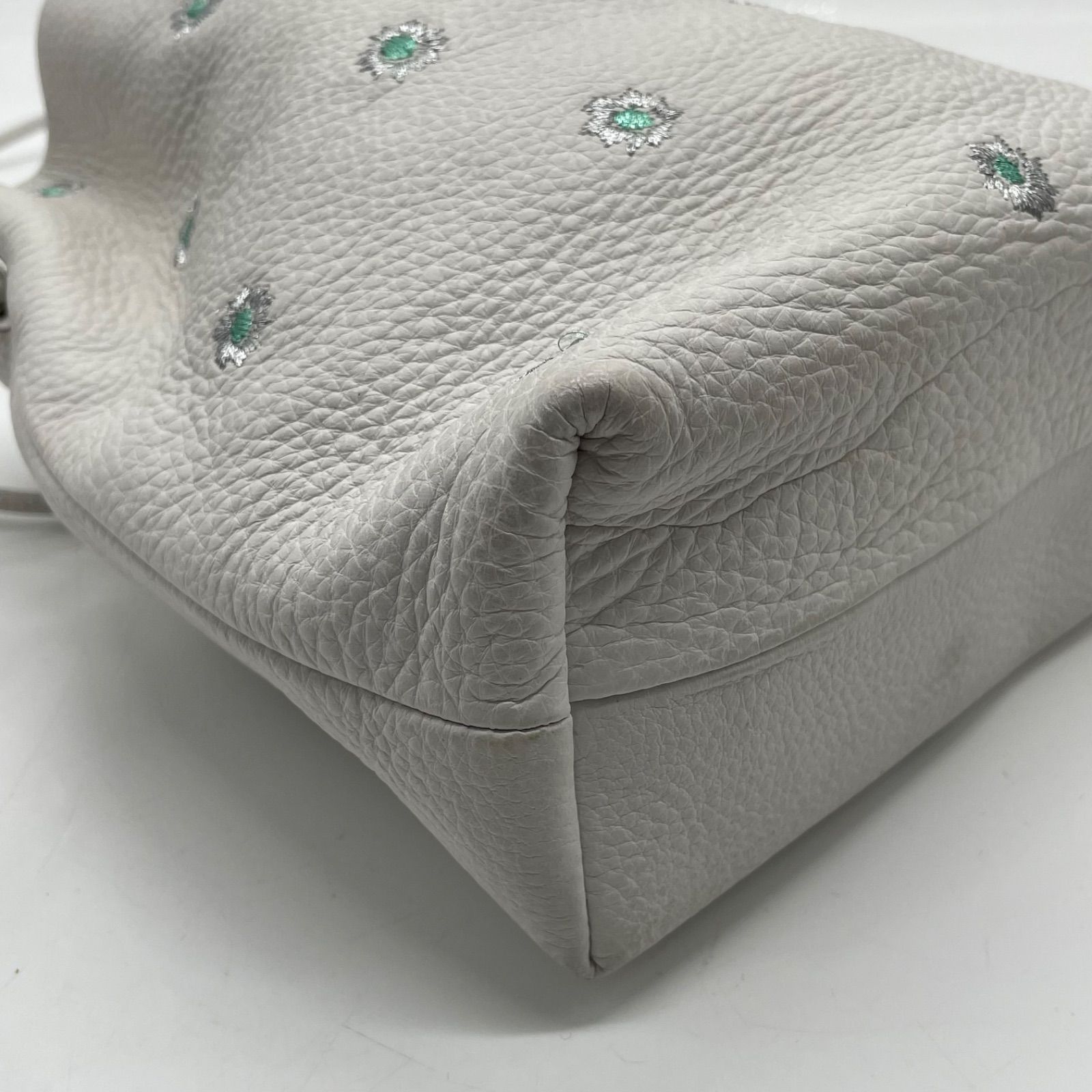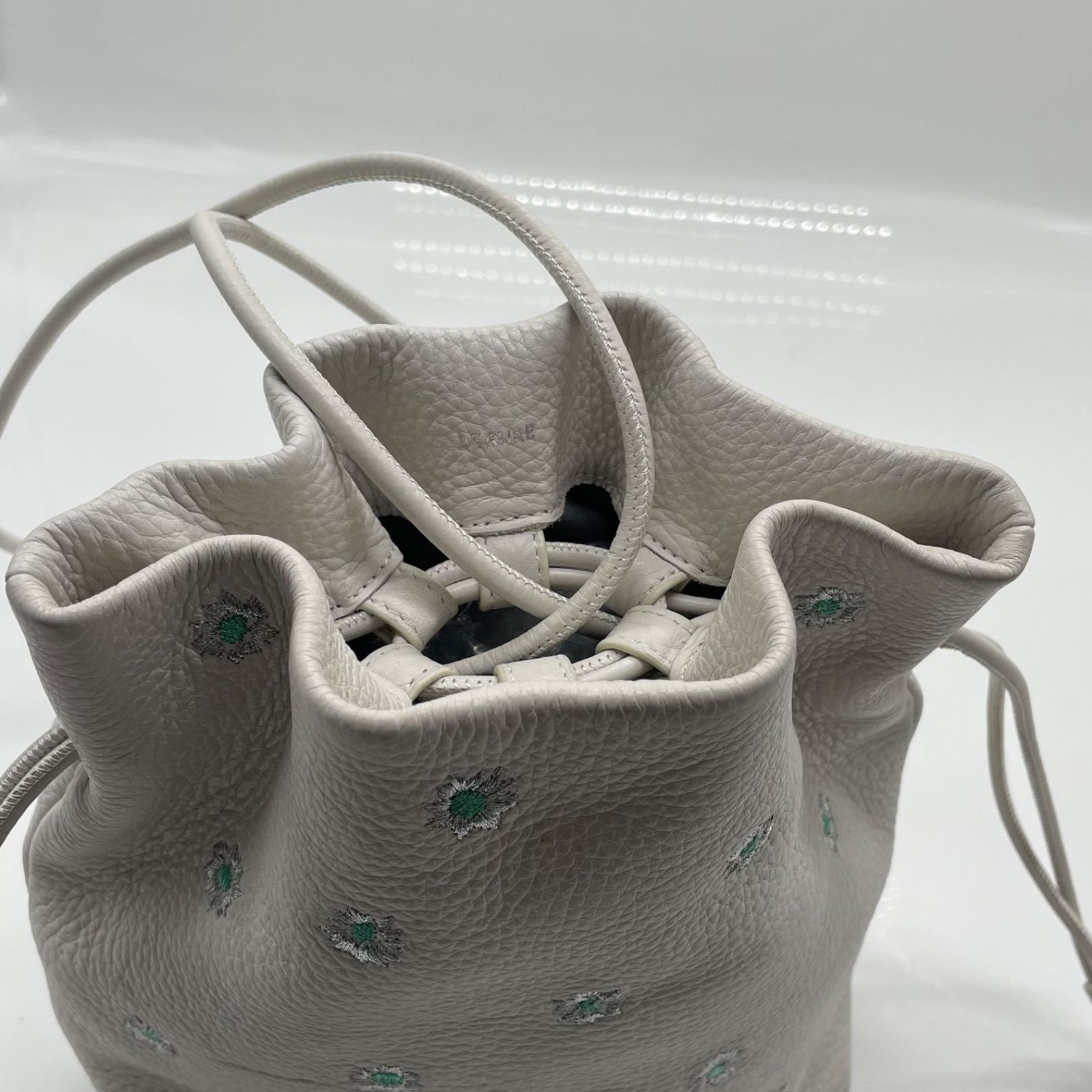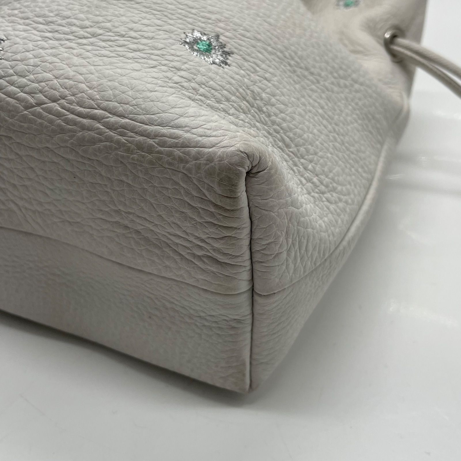 BN6927□BEAURE ヴュレ ビュレ カウレザー フラワー 刺繍 巾着 ショルダー ホワイト 本革