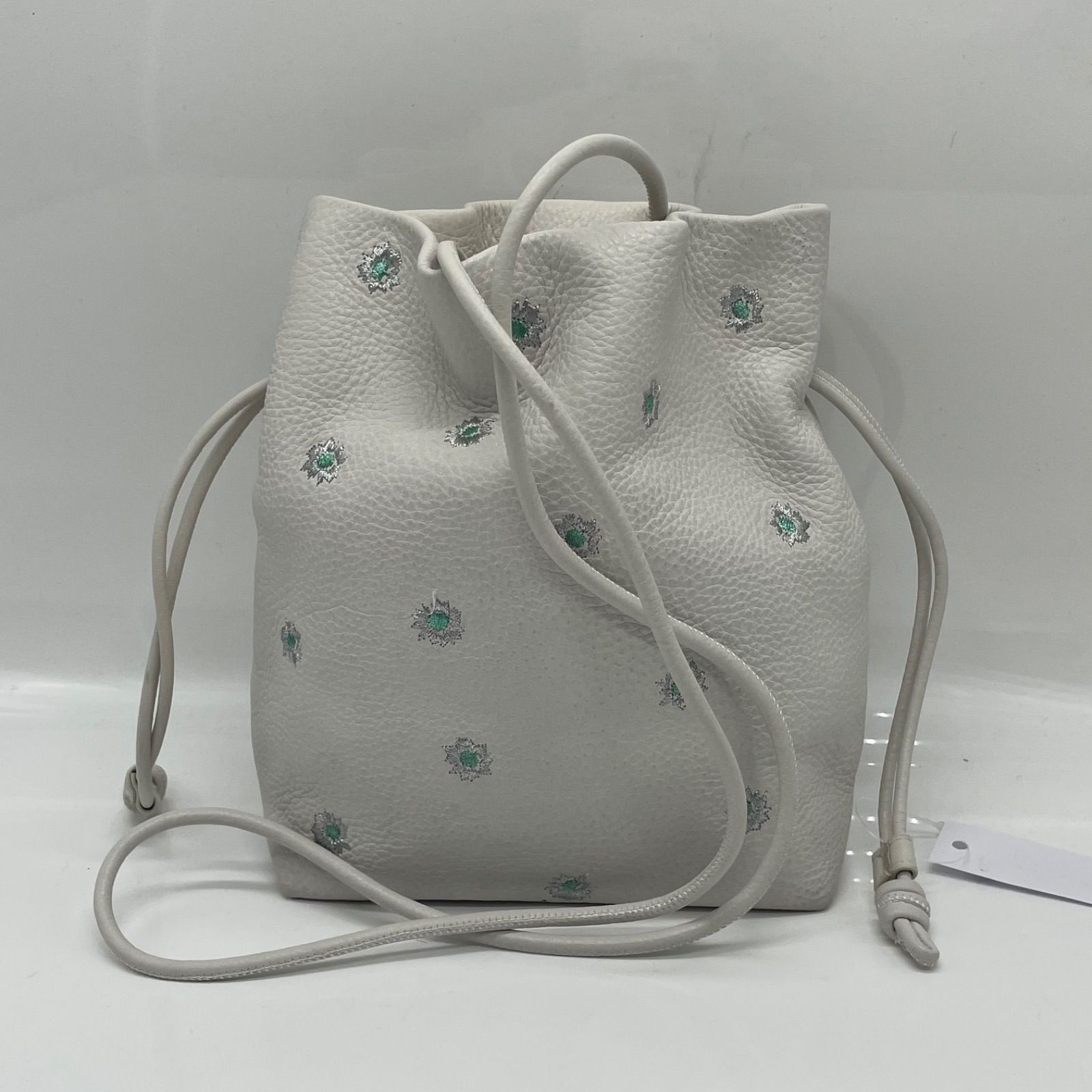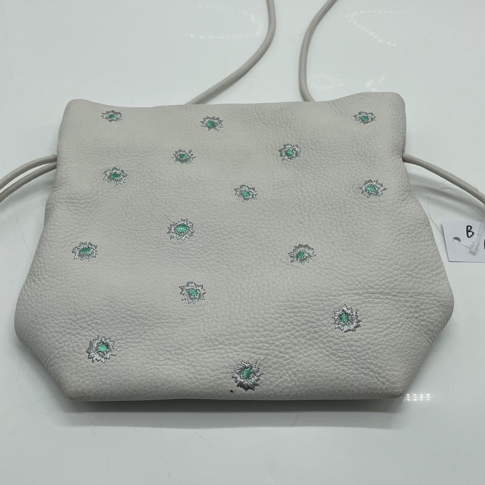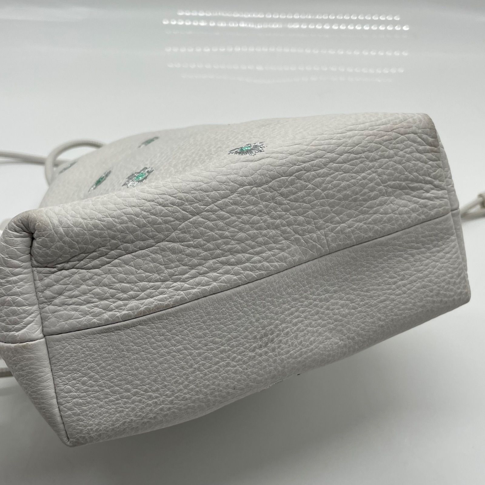 BN6927□BEAURE ヴュレ ビュレ カウレザー フラワー 刺繍 巾着 ショルダー ホワイト 本革