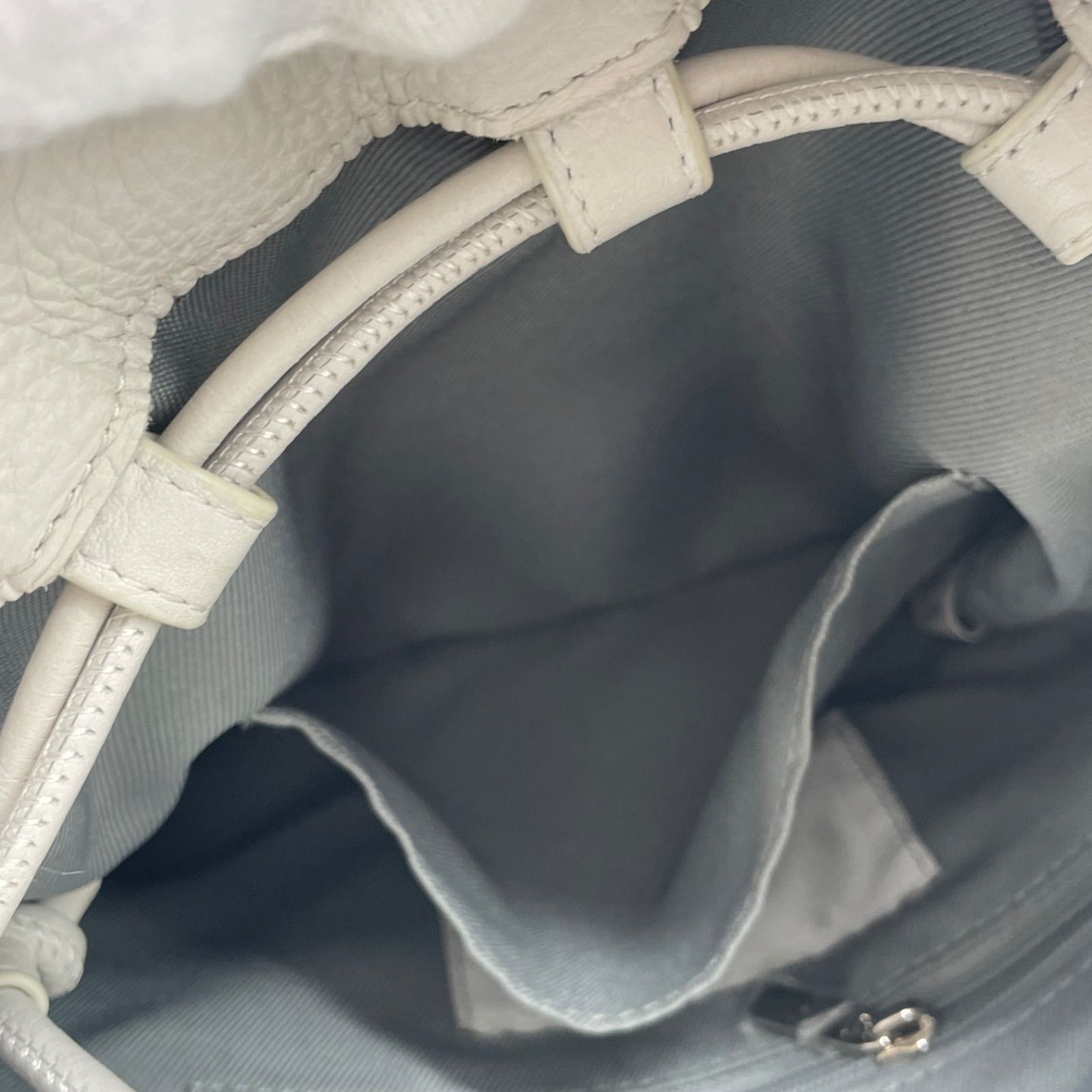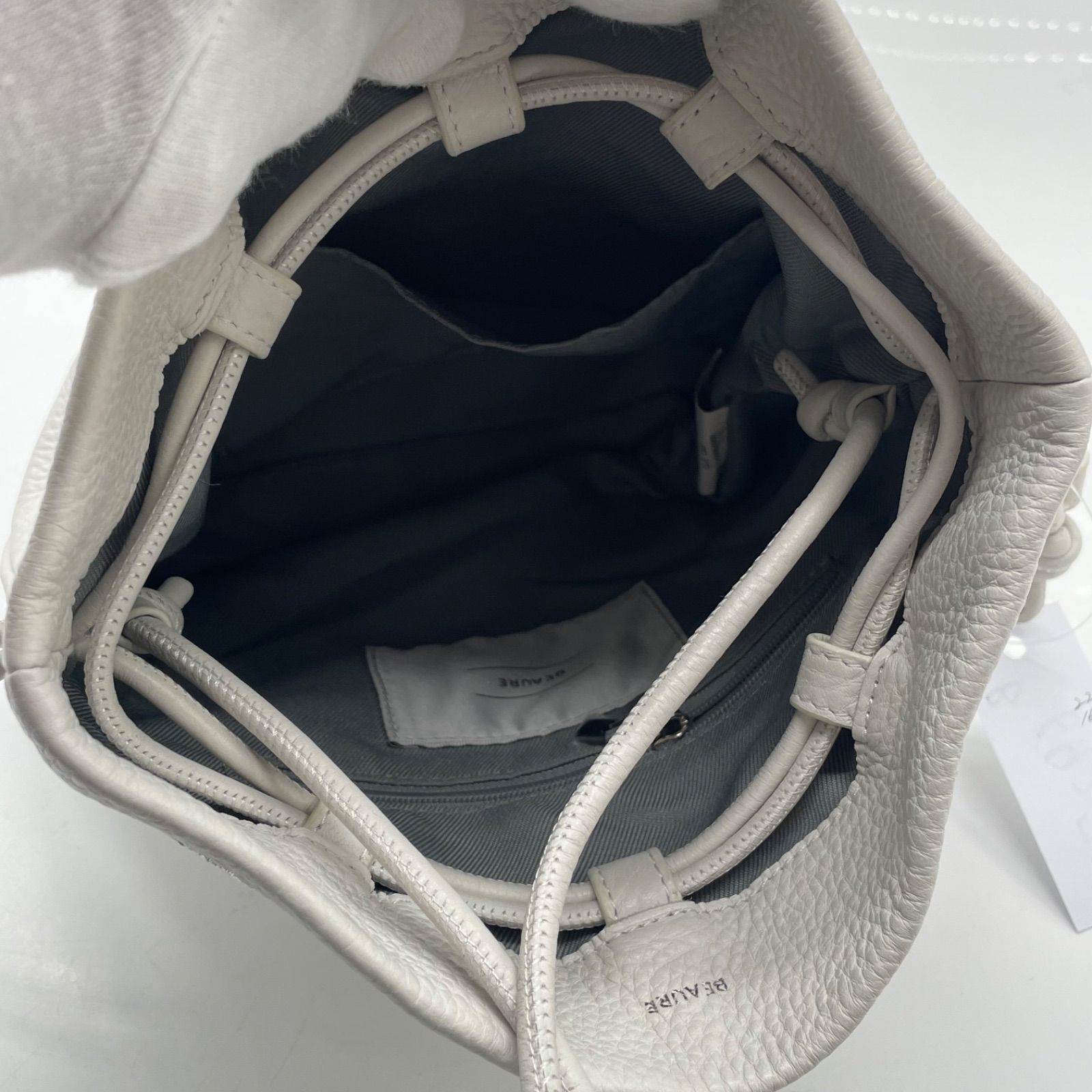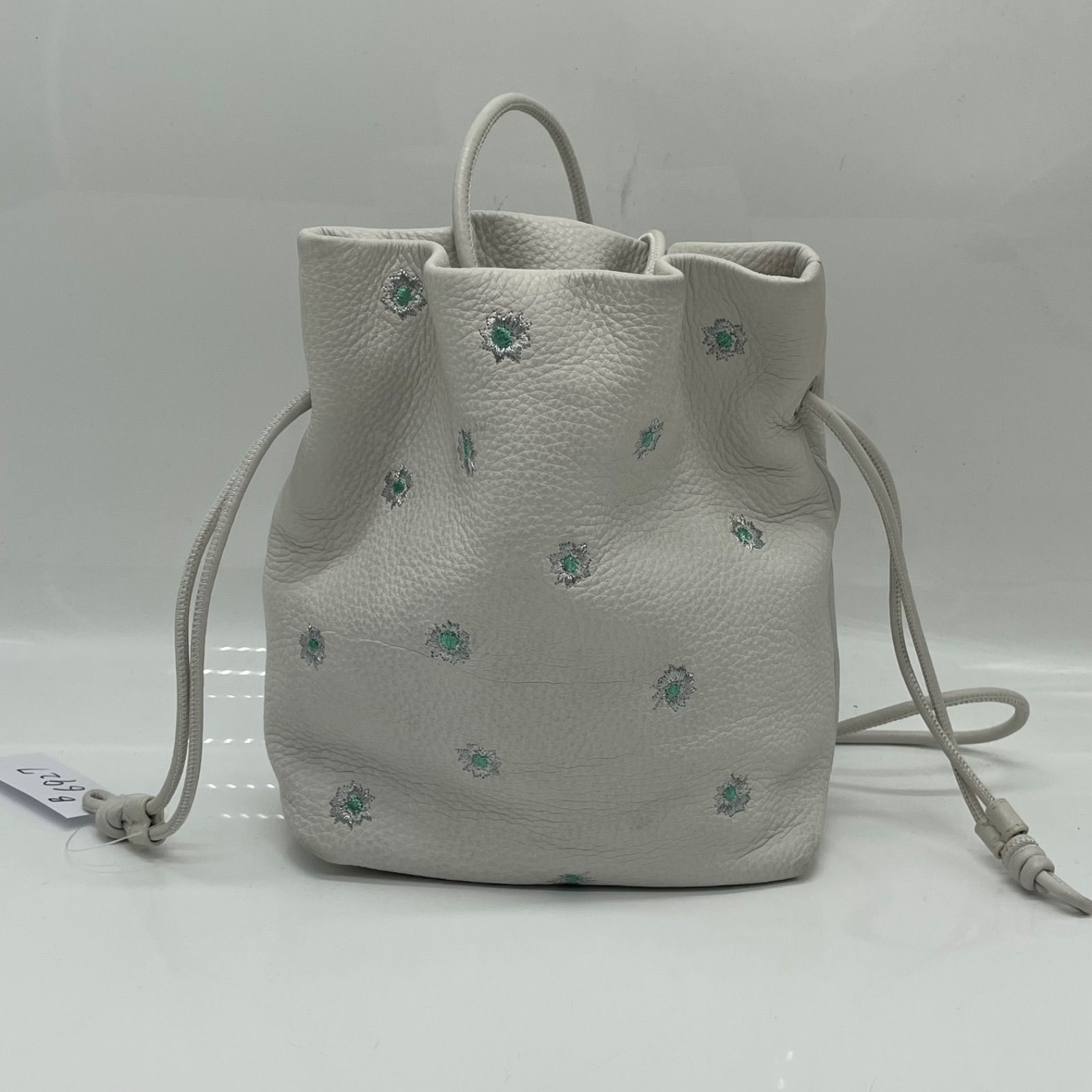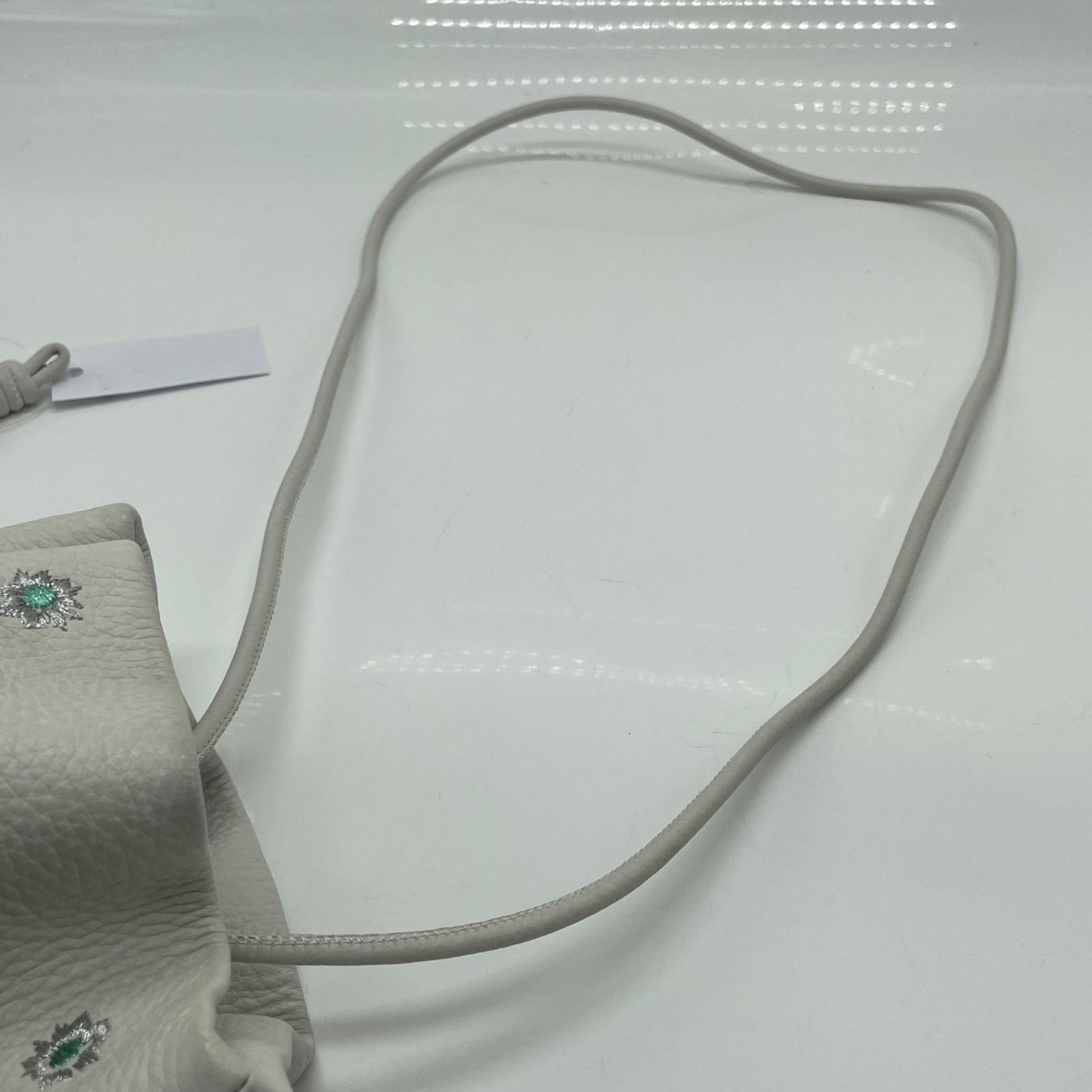 BN6927□BEAURE ヴュレ ビュレ カウレザー フラワー 刺繍 巾着 ショルダー ホワイト 本革
