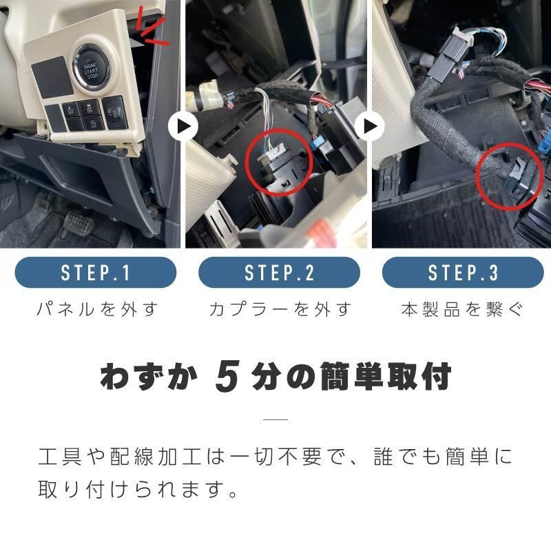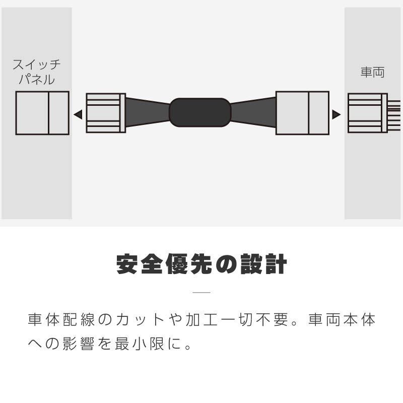 切替スイッチ付きで、必要に応じて純正動作への復帰も可能。
