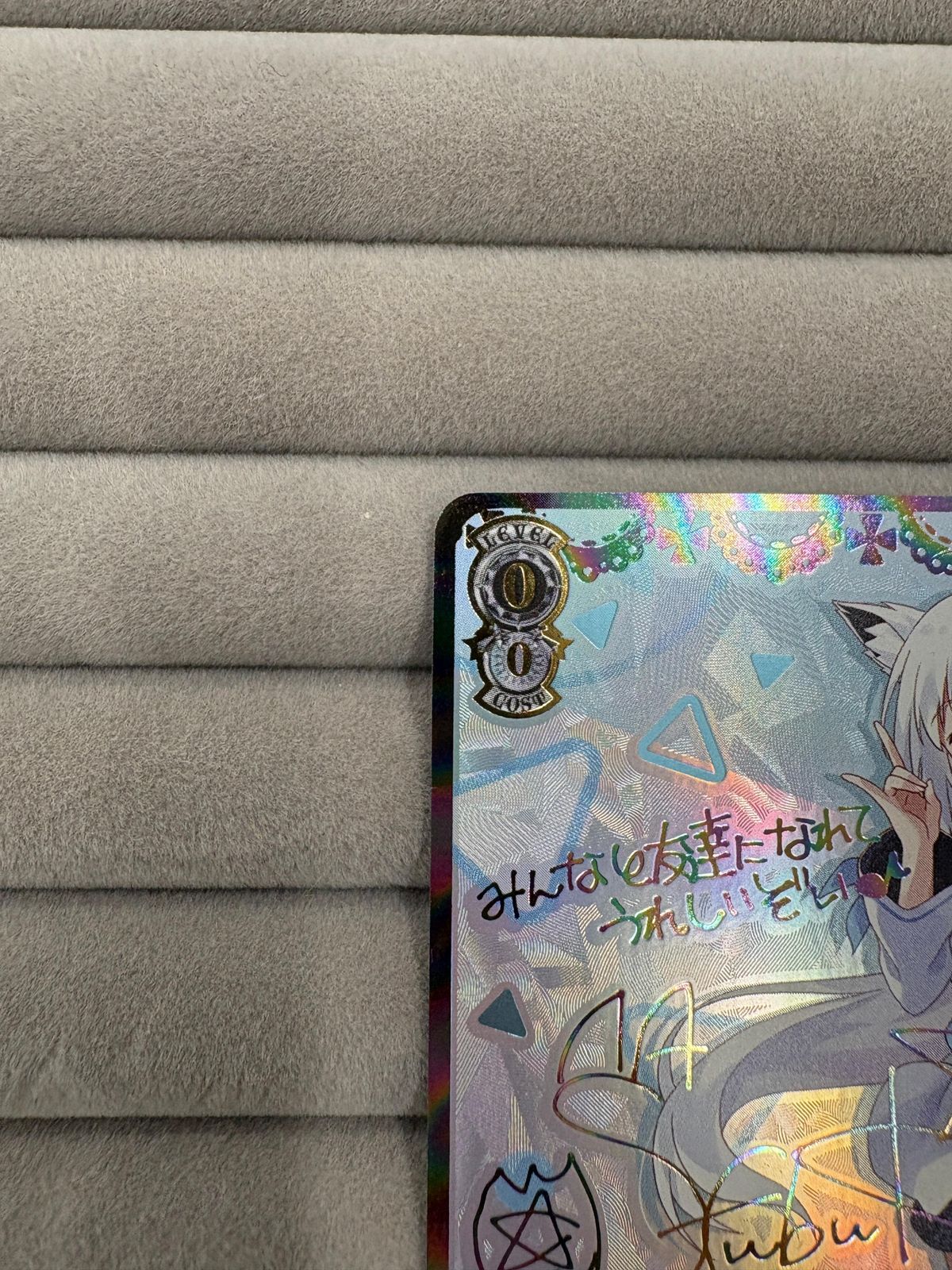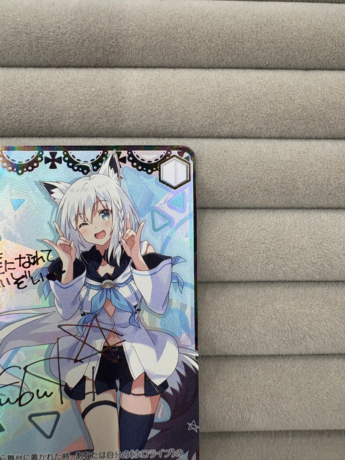 ホロライブ所属タレント 白上フブキさんの箔押し複製サイン&手書き風メッセージ が特徴の大人気カードで、