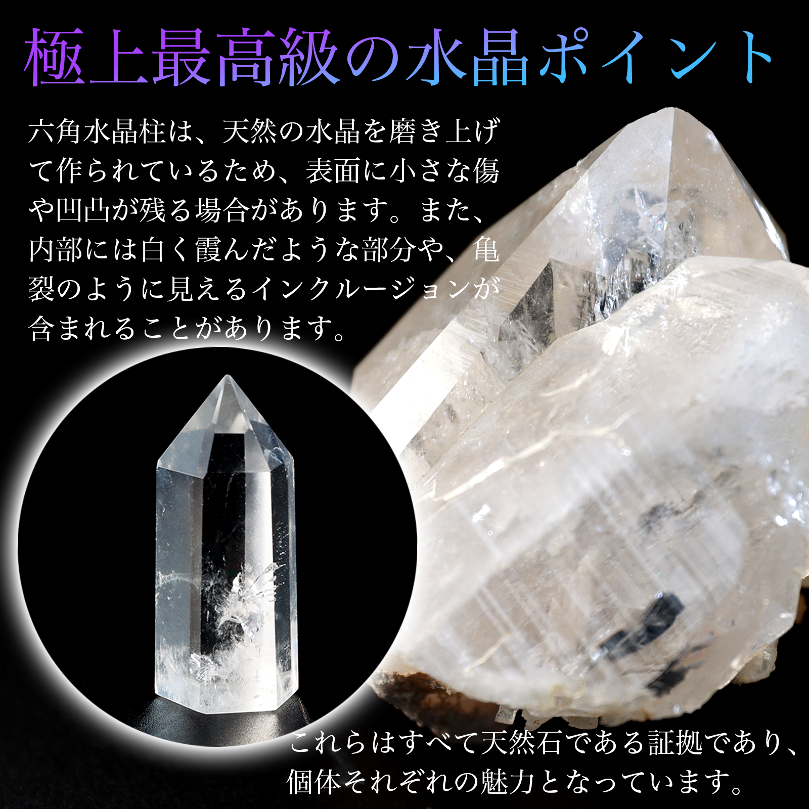 ブラジル産天然水晶を厳選。透明感と力強さを持つクリスタルはエネルギーを増幅し、浄化能力も高いとされています。※天然石のためクラックやインクルージョンが含まれる場合がありますが、天然の証であり唯一無二の個性です。