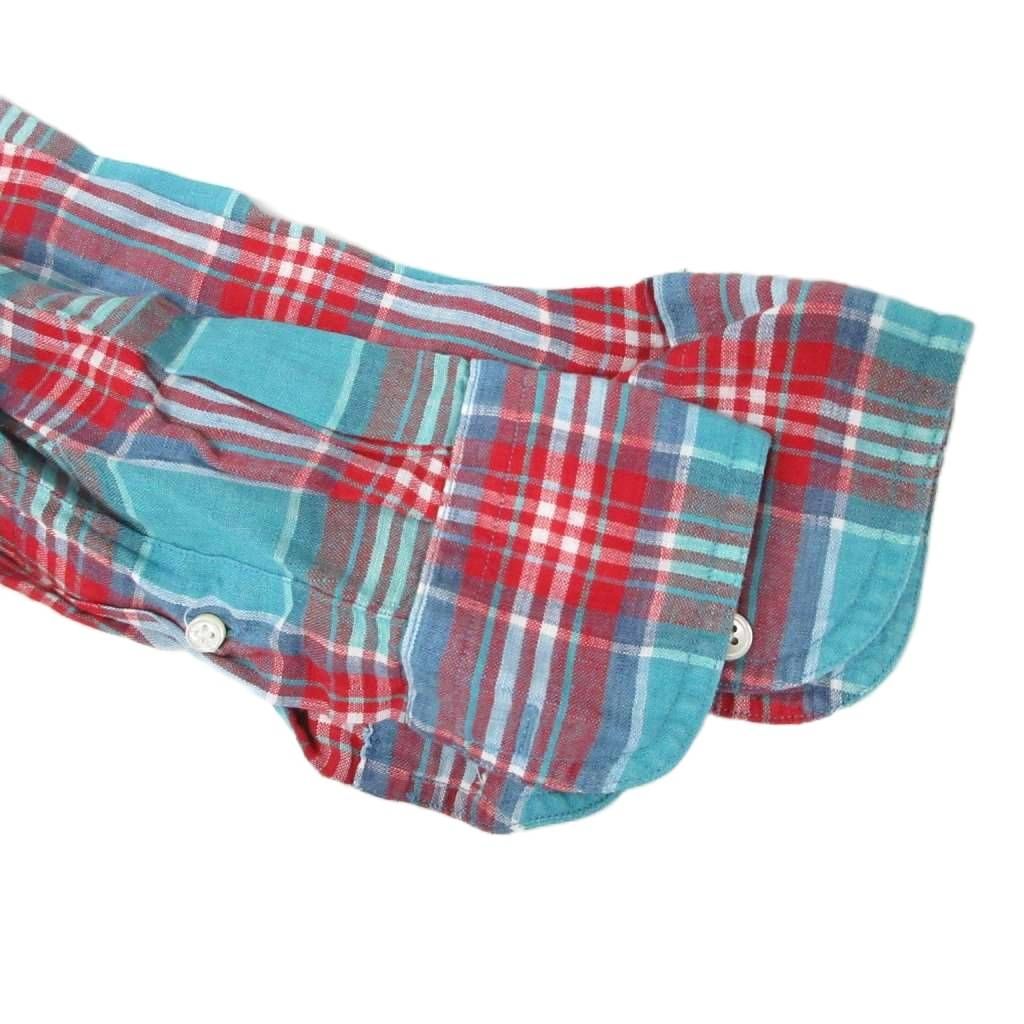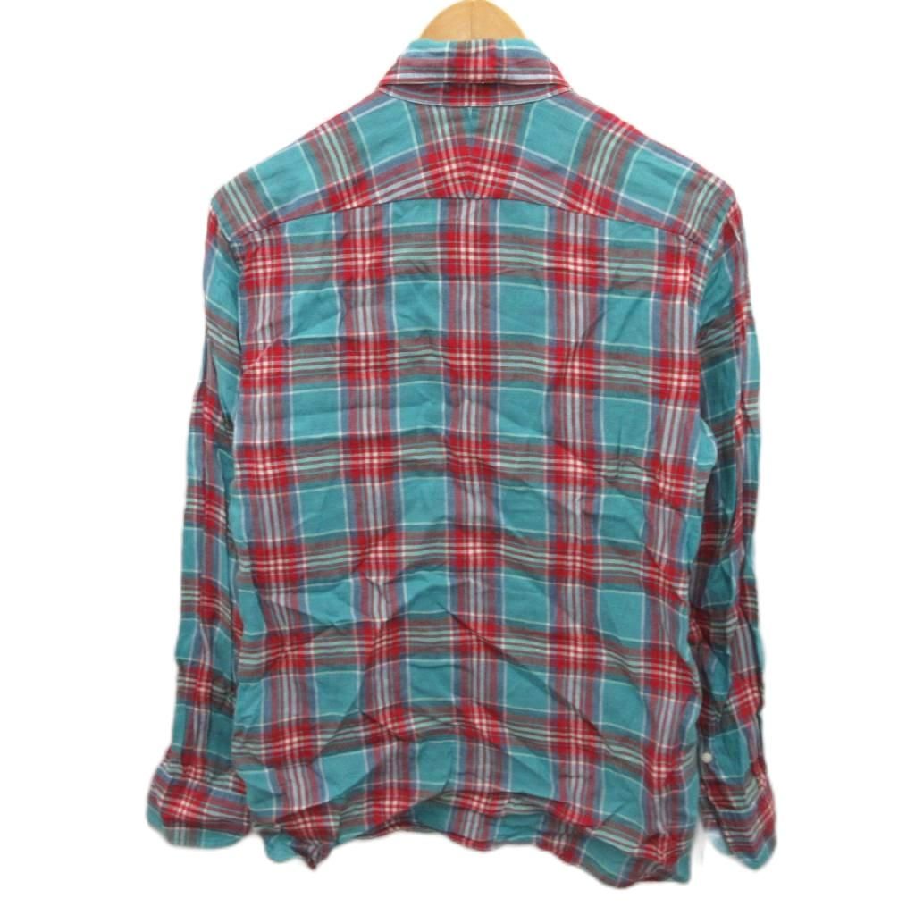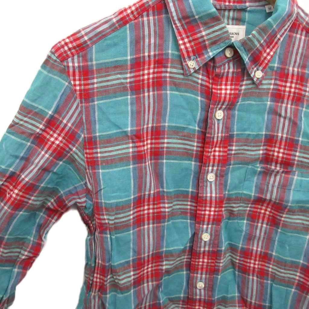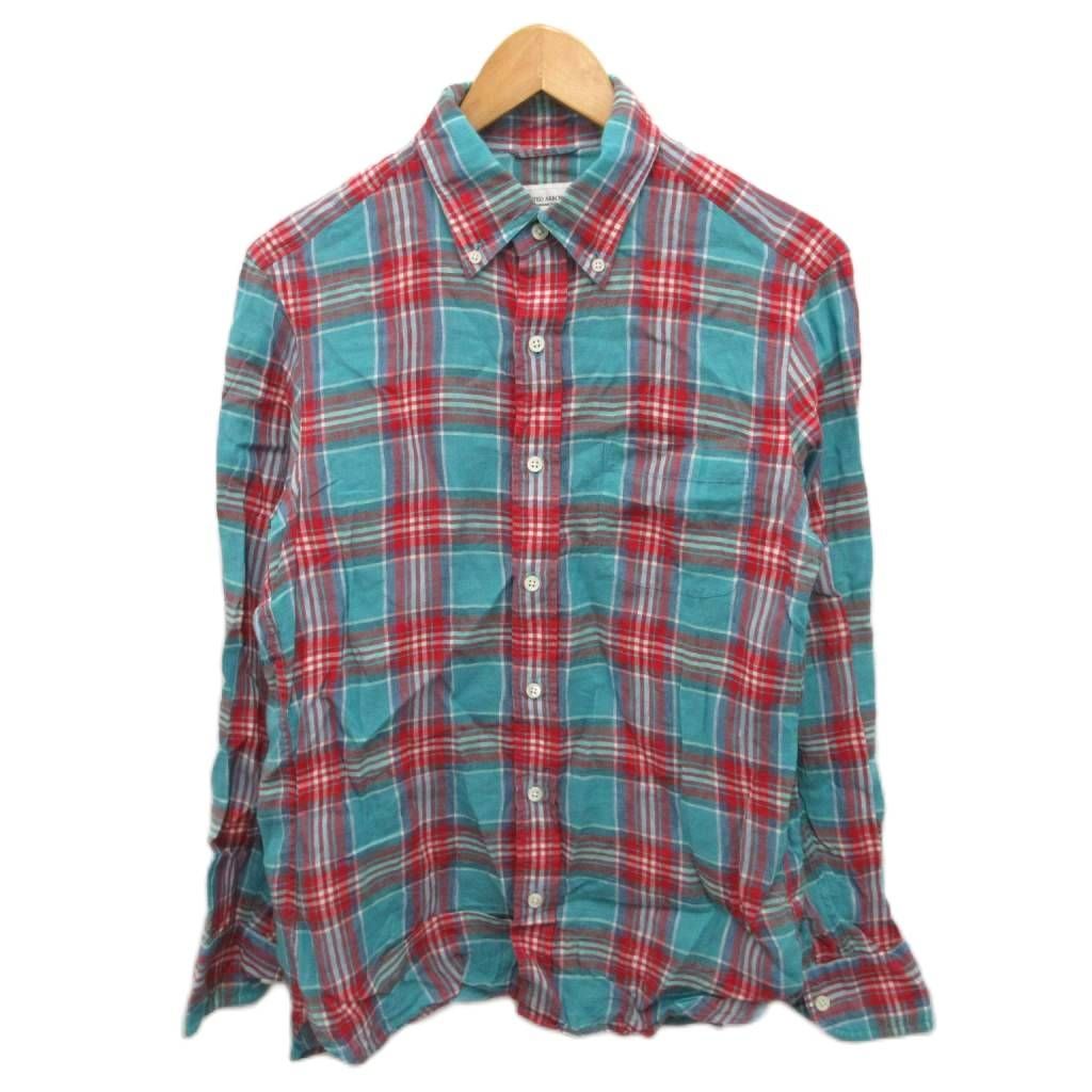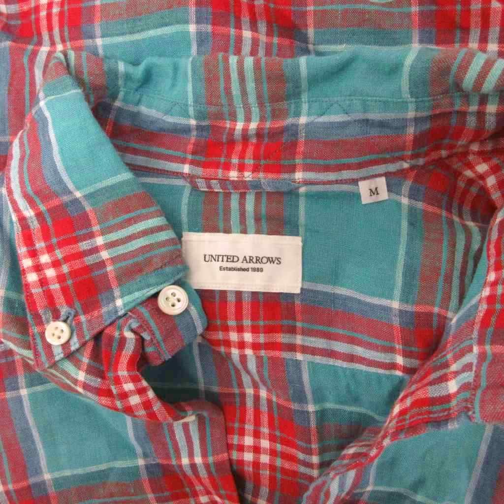 【商品名】ユナイテッドアローズ UNITED ARROWS ボタンダウンシャツ BDシャツ 長袖 チェック柄 麻 リネン100% M 水色 赤 レッド ■MET2