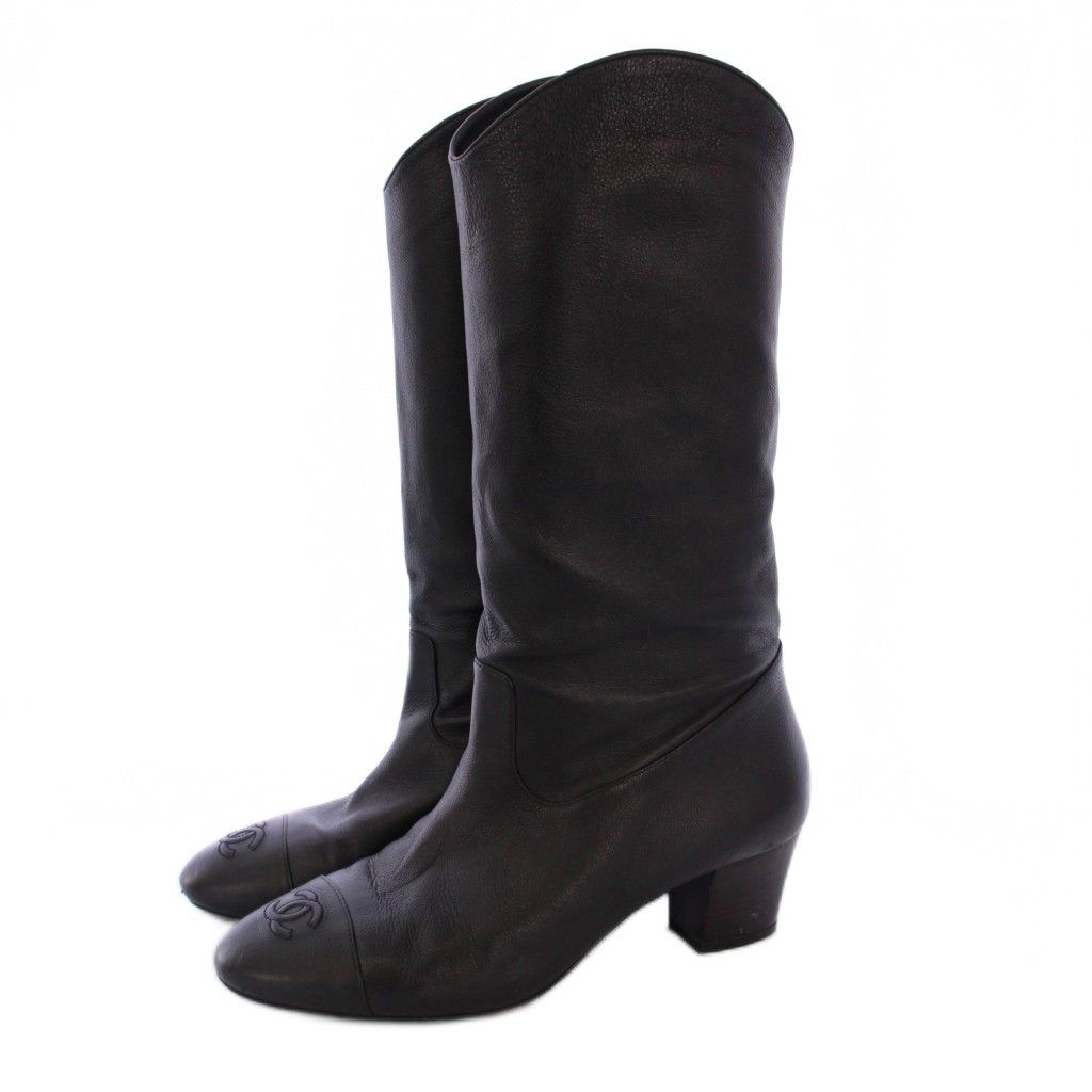 【商品名】シャネル CHANEL ジョッキーブーツ ミドル丈 ココマーク レザー 38C 黒 G36273 /KH