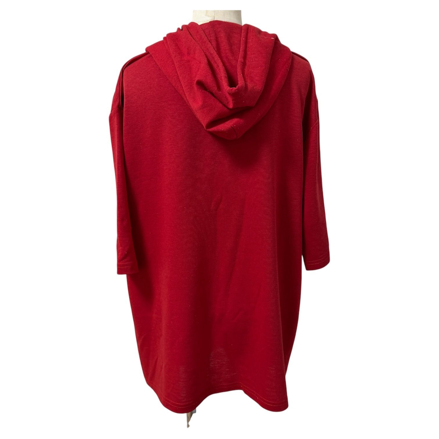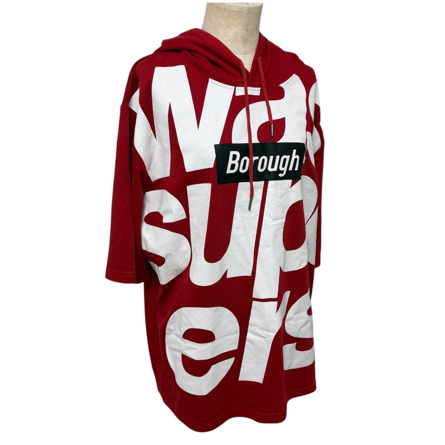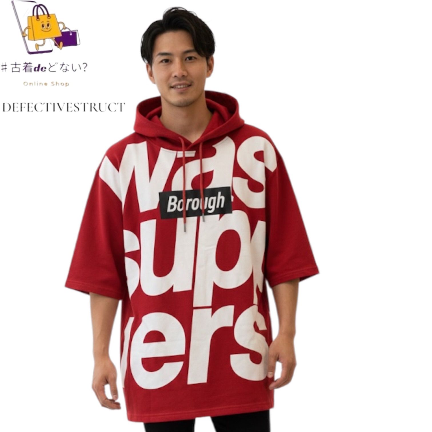 インパクト抜群!ストリート系の赤×ビッグロゴが目を引く半袖パーカーです