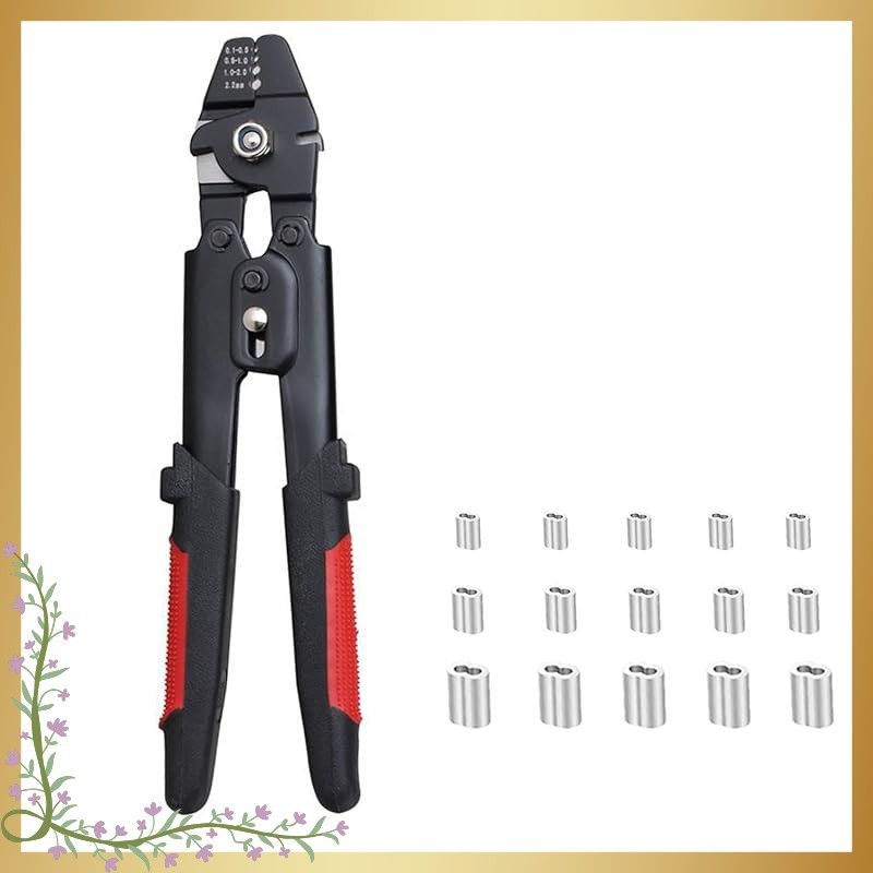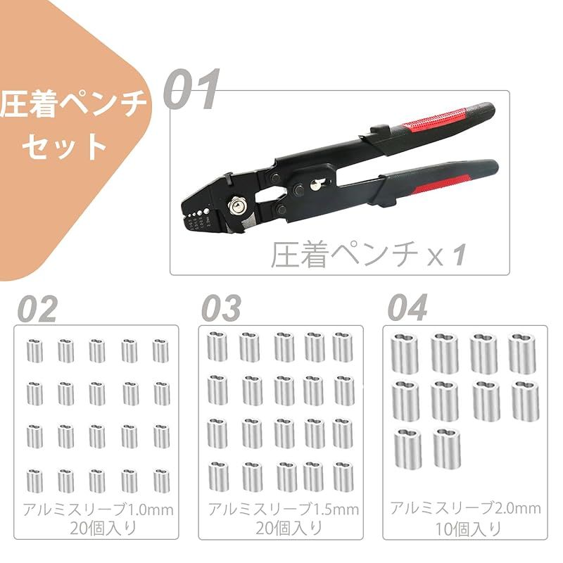【お買い得な圧着ペンチセット】ワイヤーロープ圧着ペンチx1 , 50pcsスリーブ付き:8文字型スリーブ:1mm x 20pcs、 1.5mm x 20pcs、2mm x 10pcs