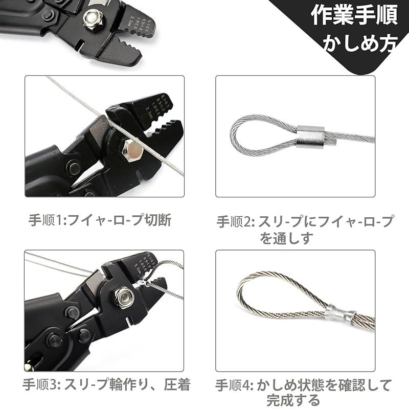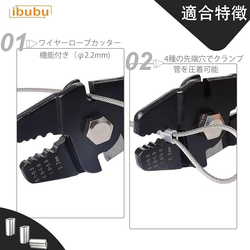 商品名:【迅速】ibubu 圧着ペンチ ワイヤークランプカッター ワイヤーストリッパー ワイヤーロープカッター アルミスリーブかしめ機 ハンドプレッサー 圧着スリーブ 圧着工具 φ0.1mm-φ2.2mm対応 8文字型アルミスリーブ付き 50個