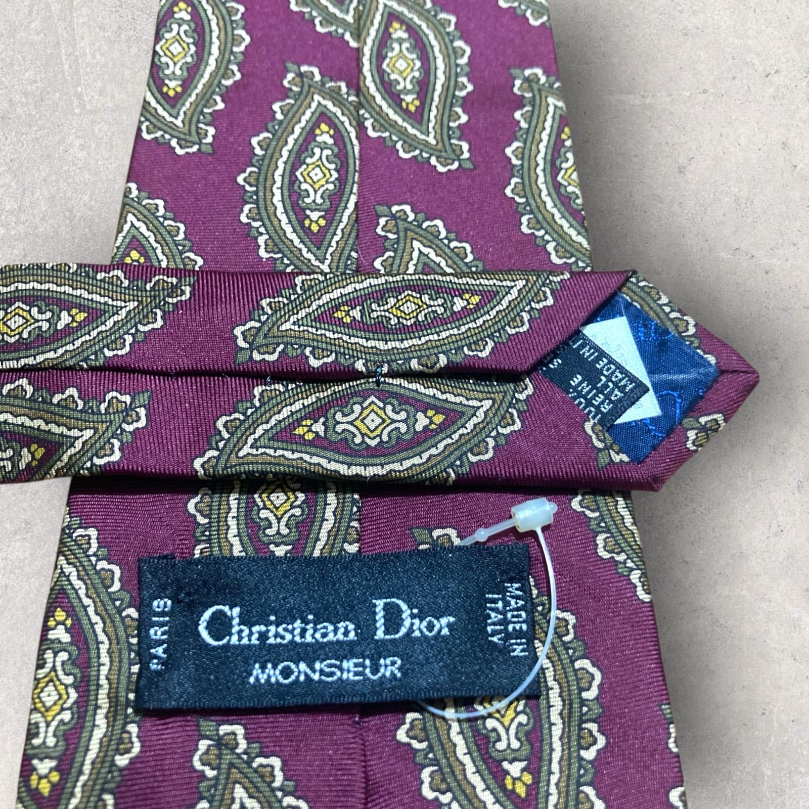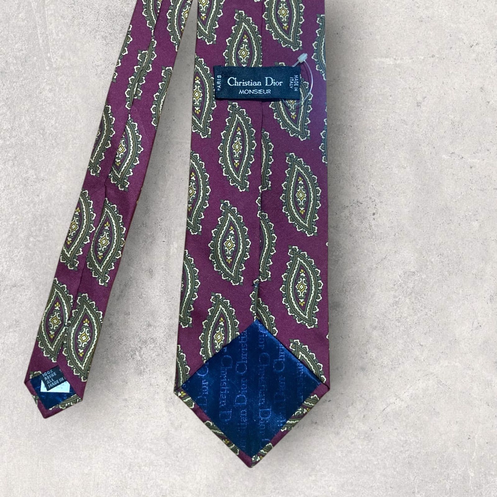 Christian Dior ディオール ペイズリー 勾玉 パネル柄 ネクタイ ボルドー