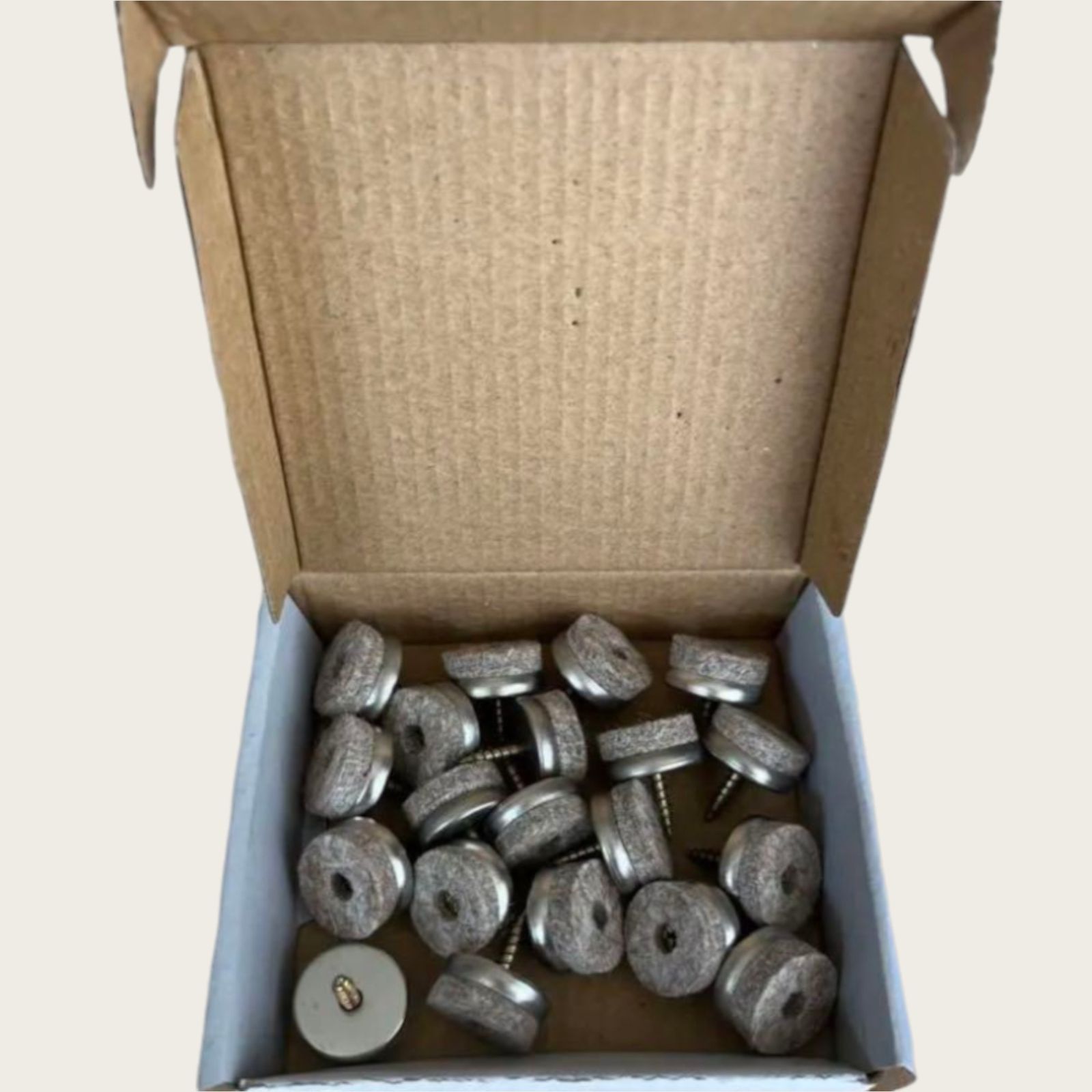 このフェルト脚をコードレスドリルやドライバーで取り付けます。長期間ご使用になる場合、下のスタッドの交換が必要になります。これでフローリングが長期的に傷や衝撃から保護されます。