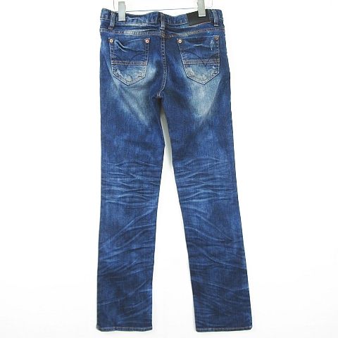 【商品名】RUNA デニム パンツ ジーンズ ストレッチ M ブルー ウォッシュ加工 kz13644