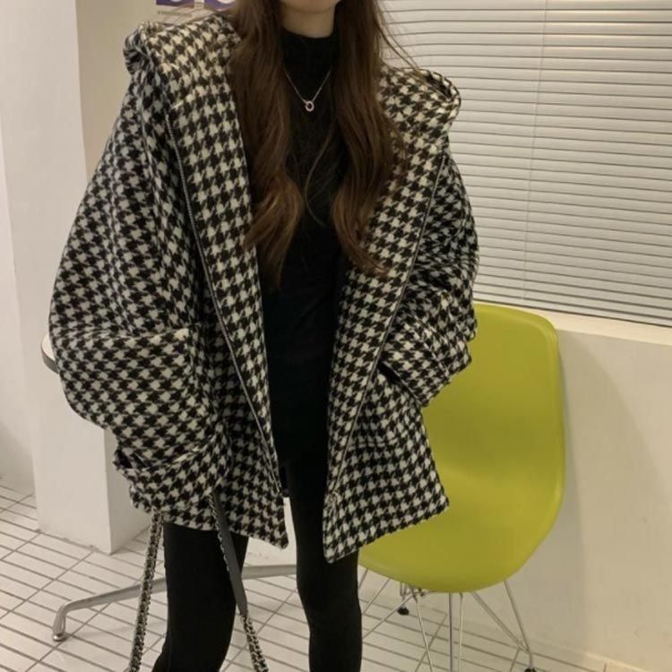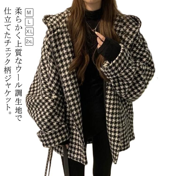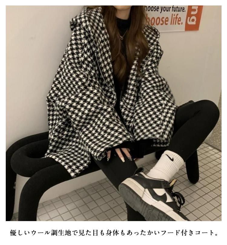 優しいウール調生地で見た目も身体もあったかいフード付きコート。