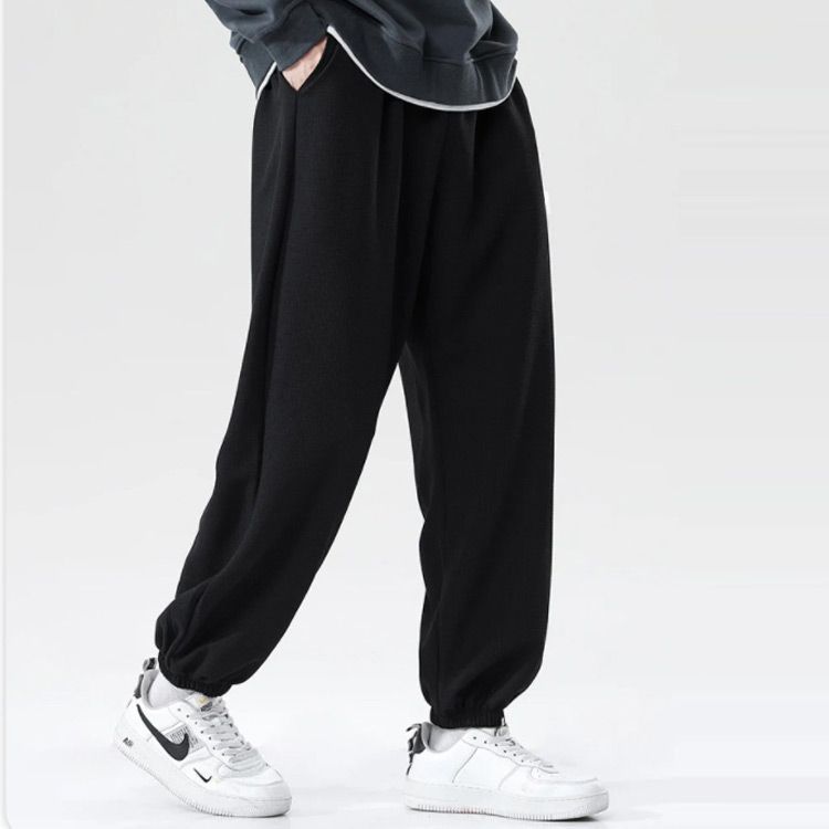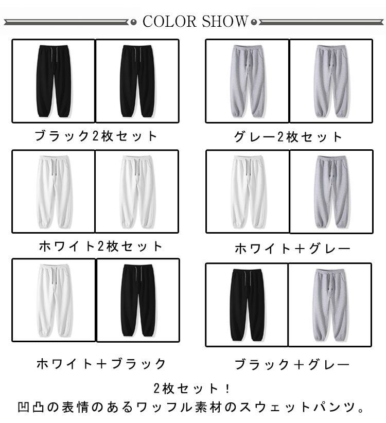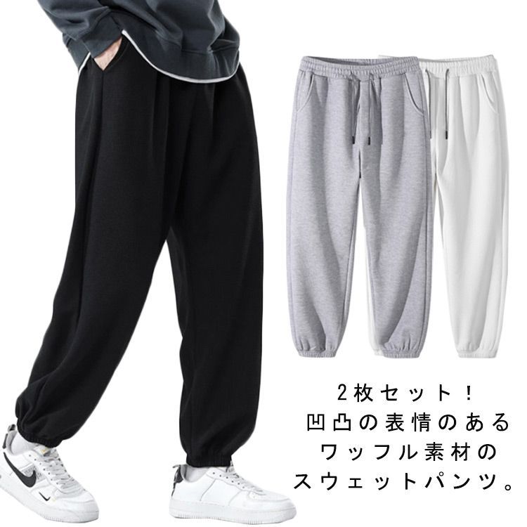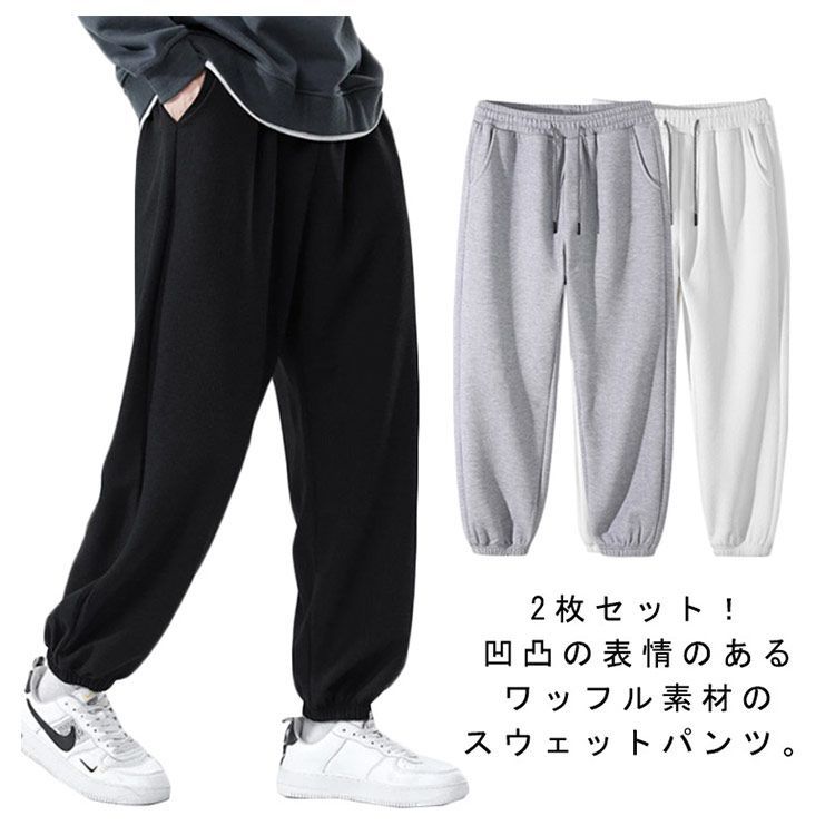2枚セット!凹凸の表情のあるワッフル素材のスウェットパンツ。