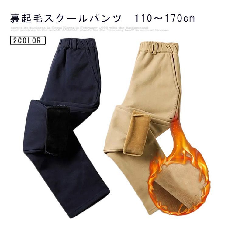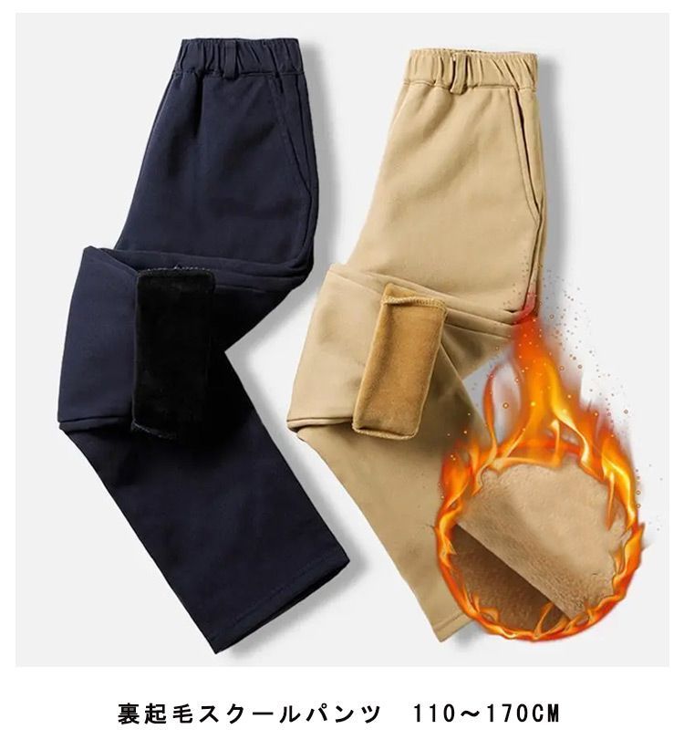 裏起毛 スクールパンツ キッズ 男の子 女の子 制服 長ズボン 学生服 通学 防寒 ボトムス 110 120 130 140 150 160 170 ロングパンツ 無地 子供服 防寒 裏起毛パンツ 秋#lulum771