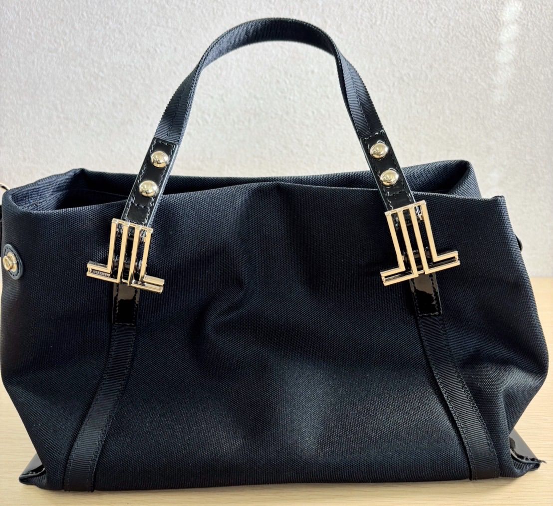 ランバンオンブルーらしい上品でフェミニンなデザインのハンドバッグです。