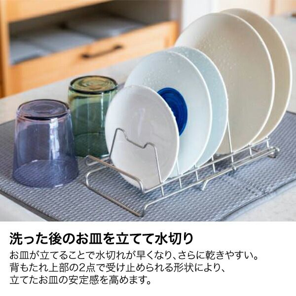 立てにくい平皿を安定して立てられる背もたれ設計で、乾きやすさも向上。