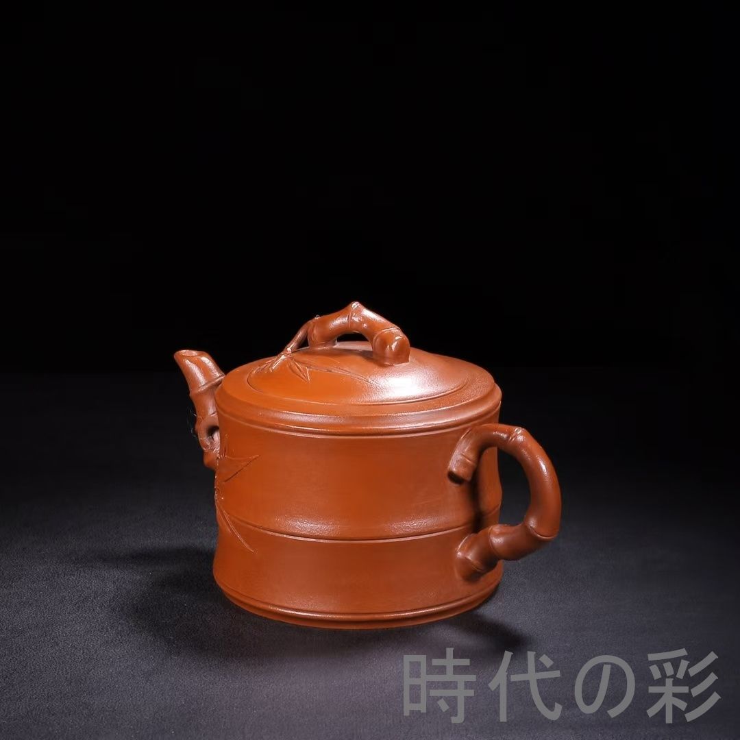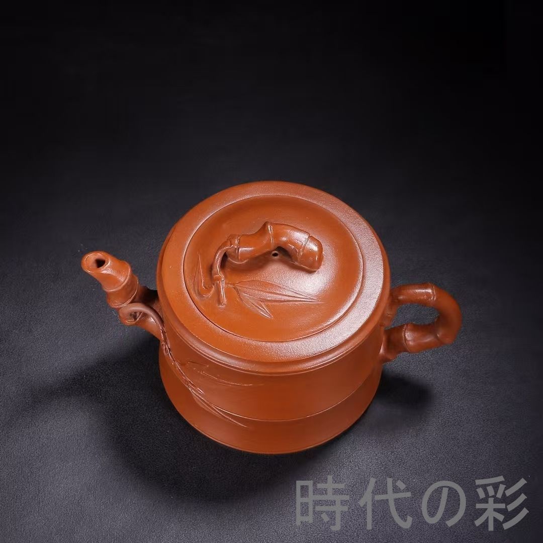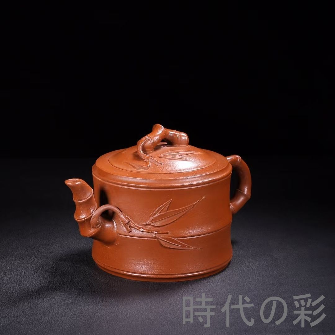 名工「朱可心」作の旧蔵竹節壺。朱泥使用、竹節彫刻が特徴で茶席・コレクション向き。