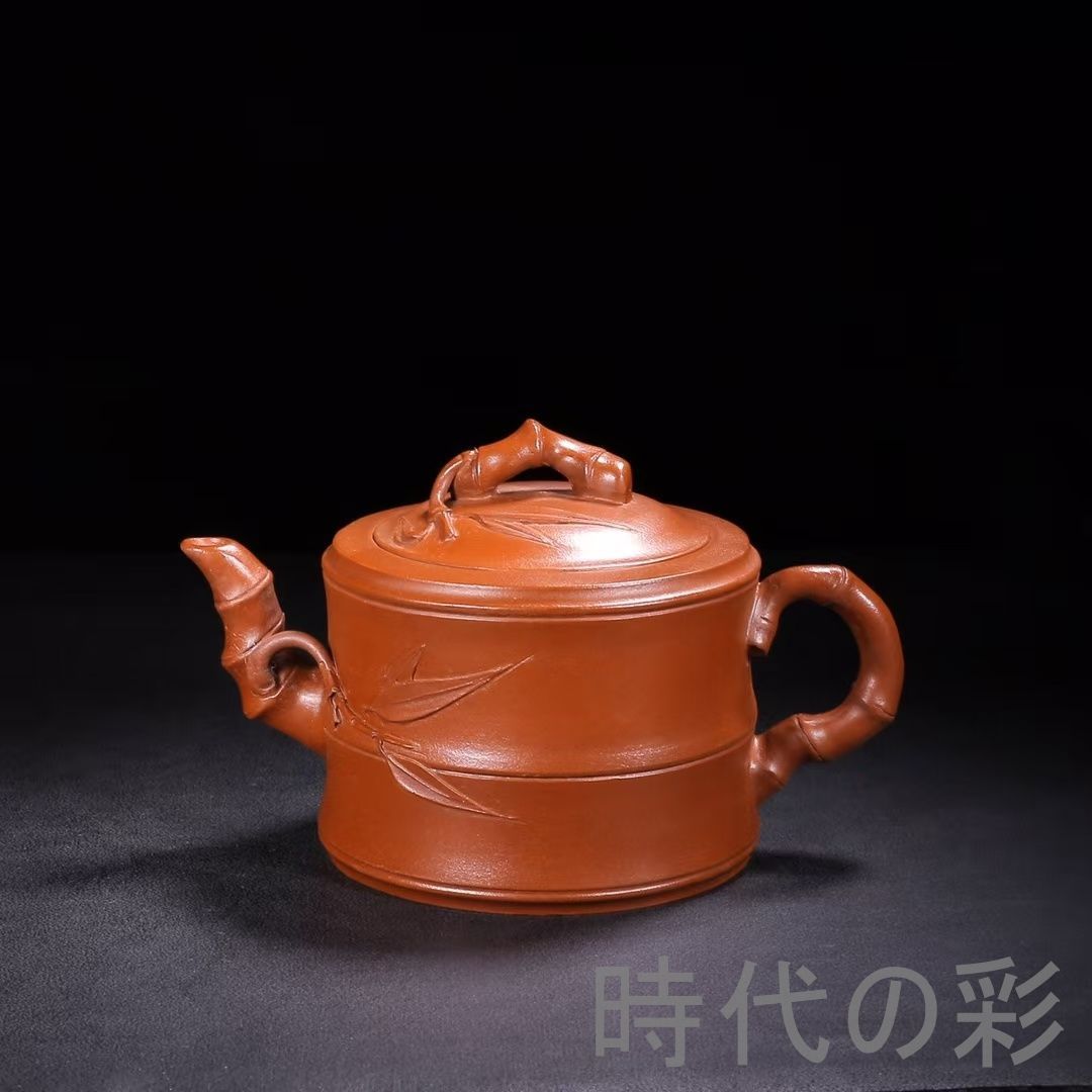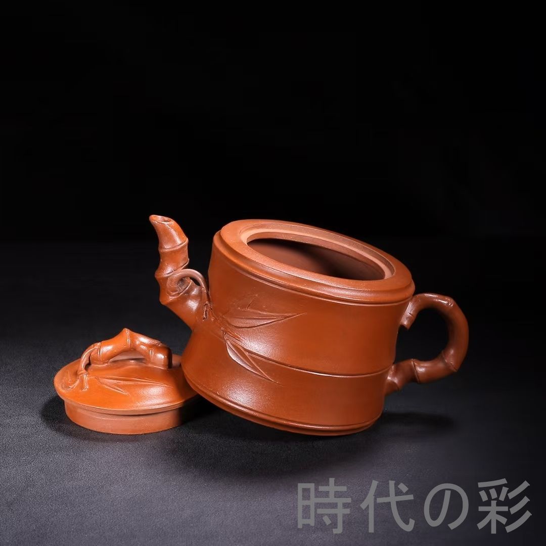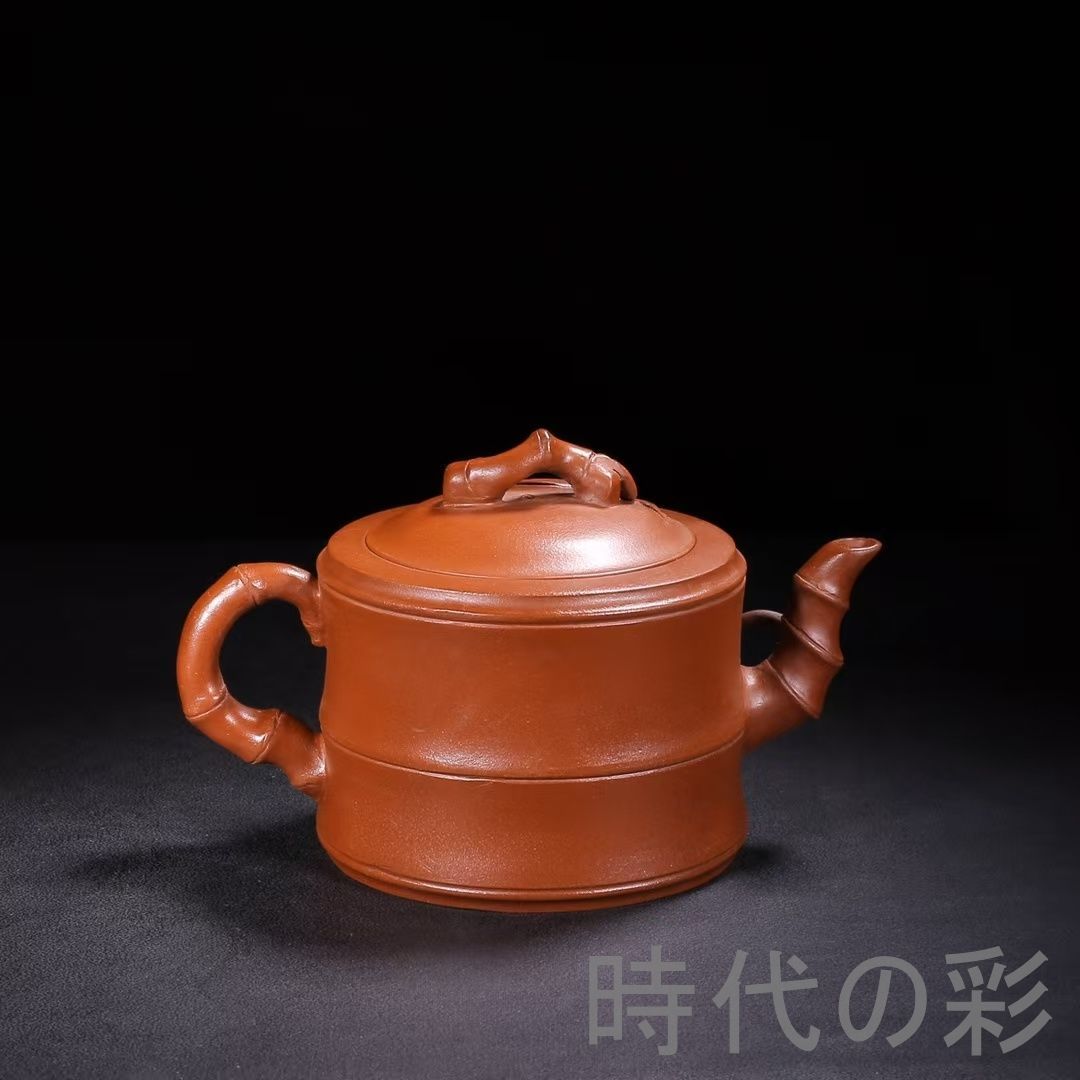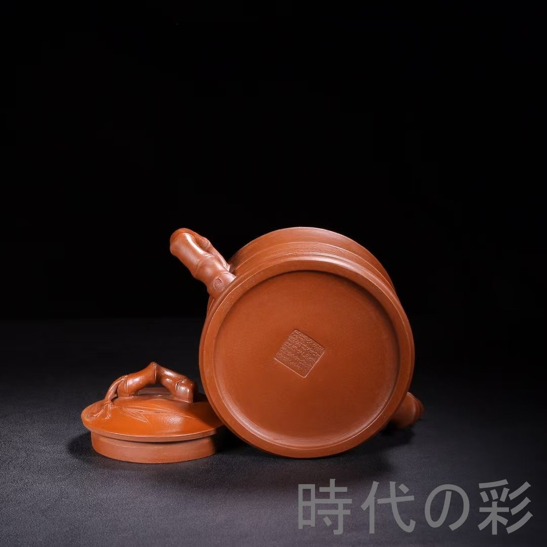 名工「朱可心」作の旧蔵竹節壺。朱泥使用、竹節彫刻が特徴で茶席・コレクション向き。
