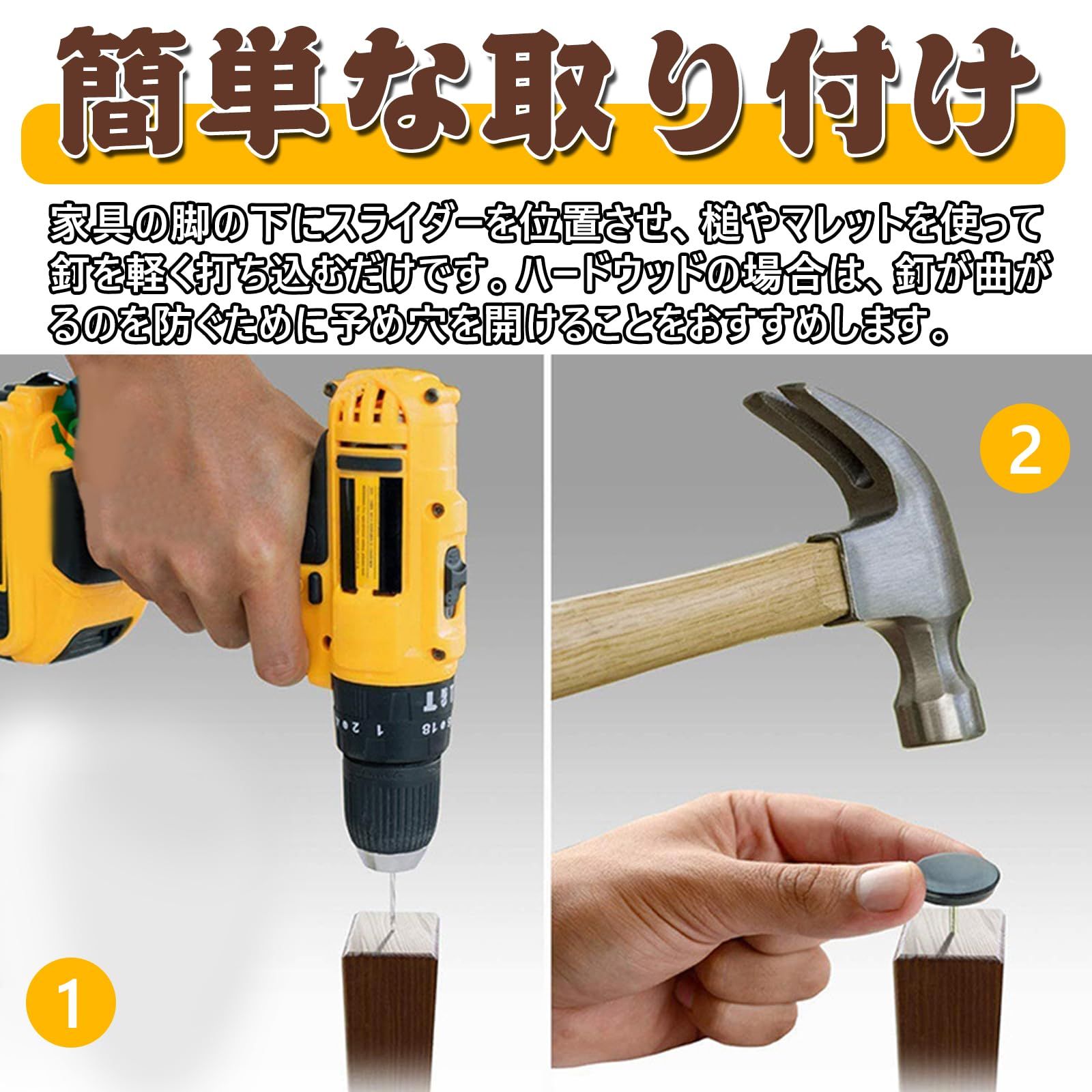 【防音効果】椅子が硬い表面に押し付けられるという不快なこすり音が二度と聞こえないので、 スライダーはノイズを減らすのに役立ちます。家具を移動させる際の騒音を軽減します。