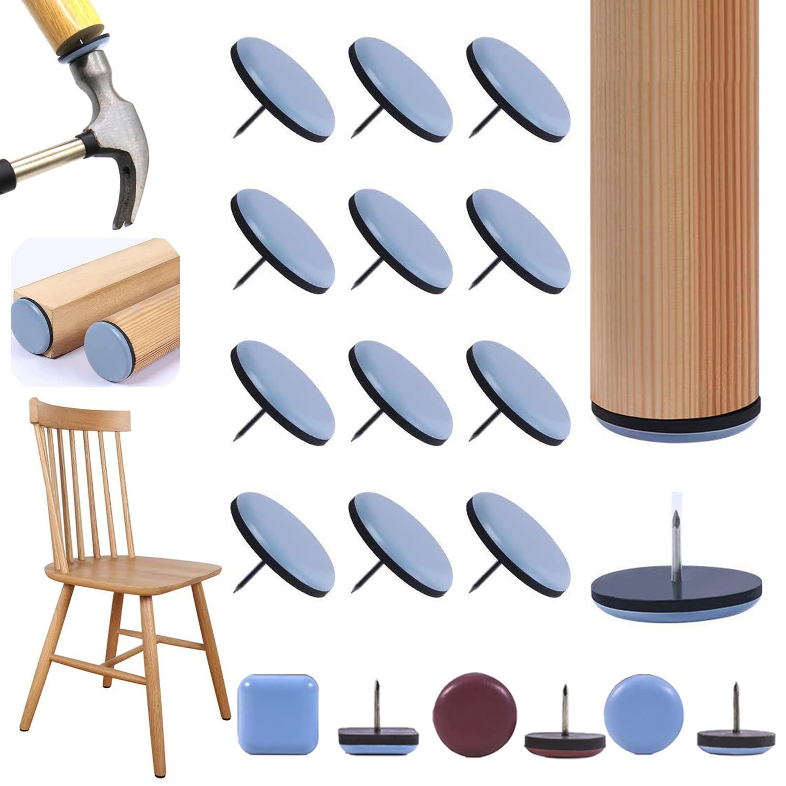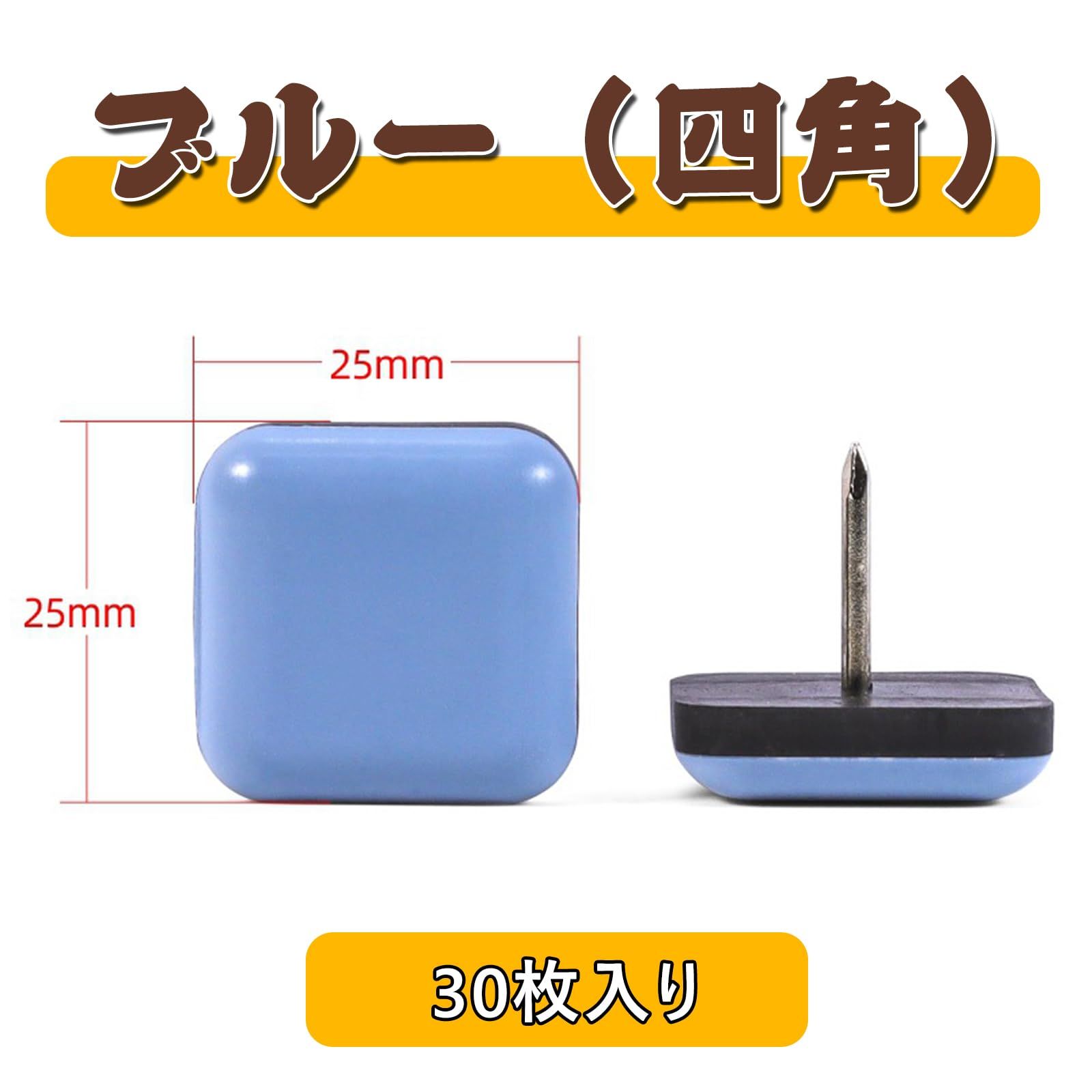 家具スライダー 椅子脚カバー 滑るタイプ 30枚入り 25mm 椅子の足カバー 丸い 四角 椅子足カバー 滑る 家具移動パッド ネイル付き キズ防止 防音 椅子の足 傷防止 テーブル キャビネット 床 ソファー 椅子足 滑りやすく 家具移動 便利グッズ (ブルー (四角))