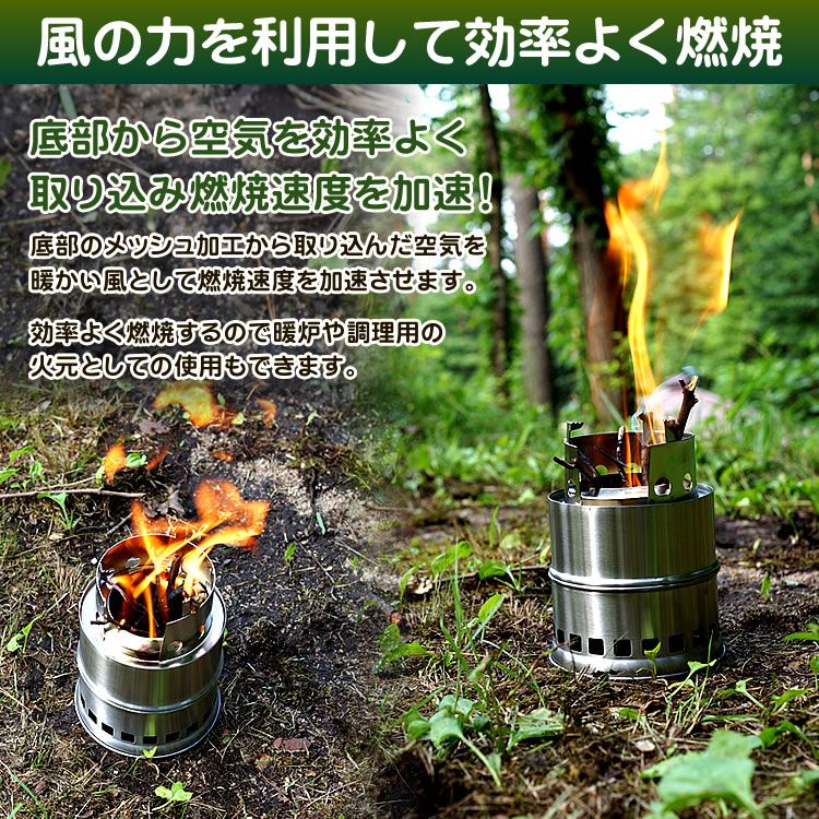 入れて火をつけるだけ!効率よく風を取り込み燃焼を促します。
