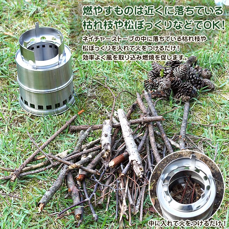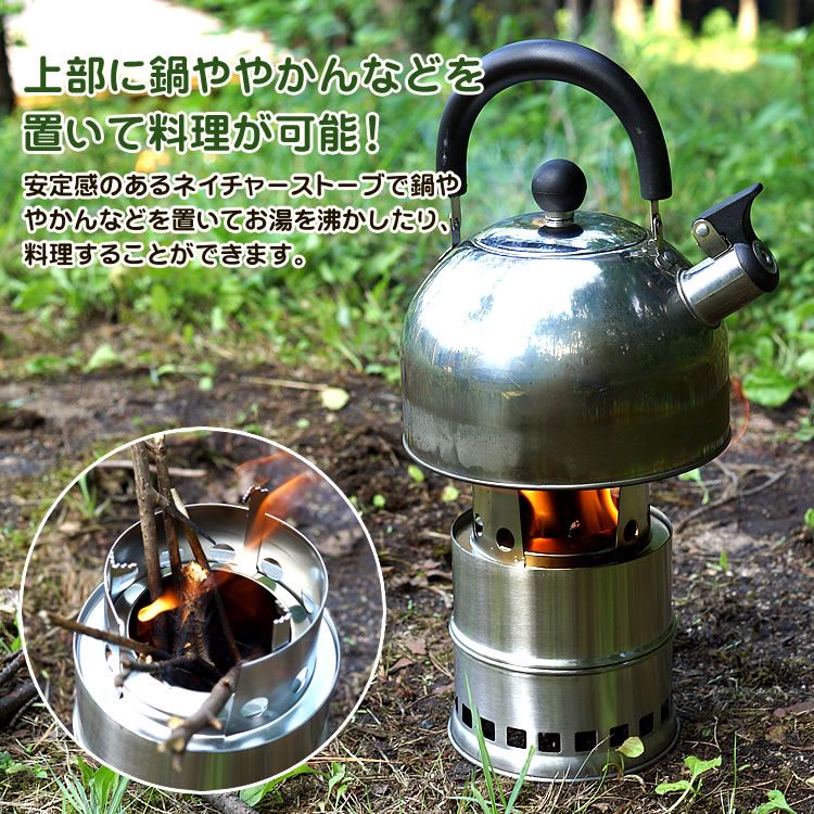 安定感のあるネイチャーストーブで鍋ややかんなどを置いて
