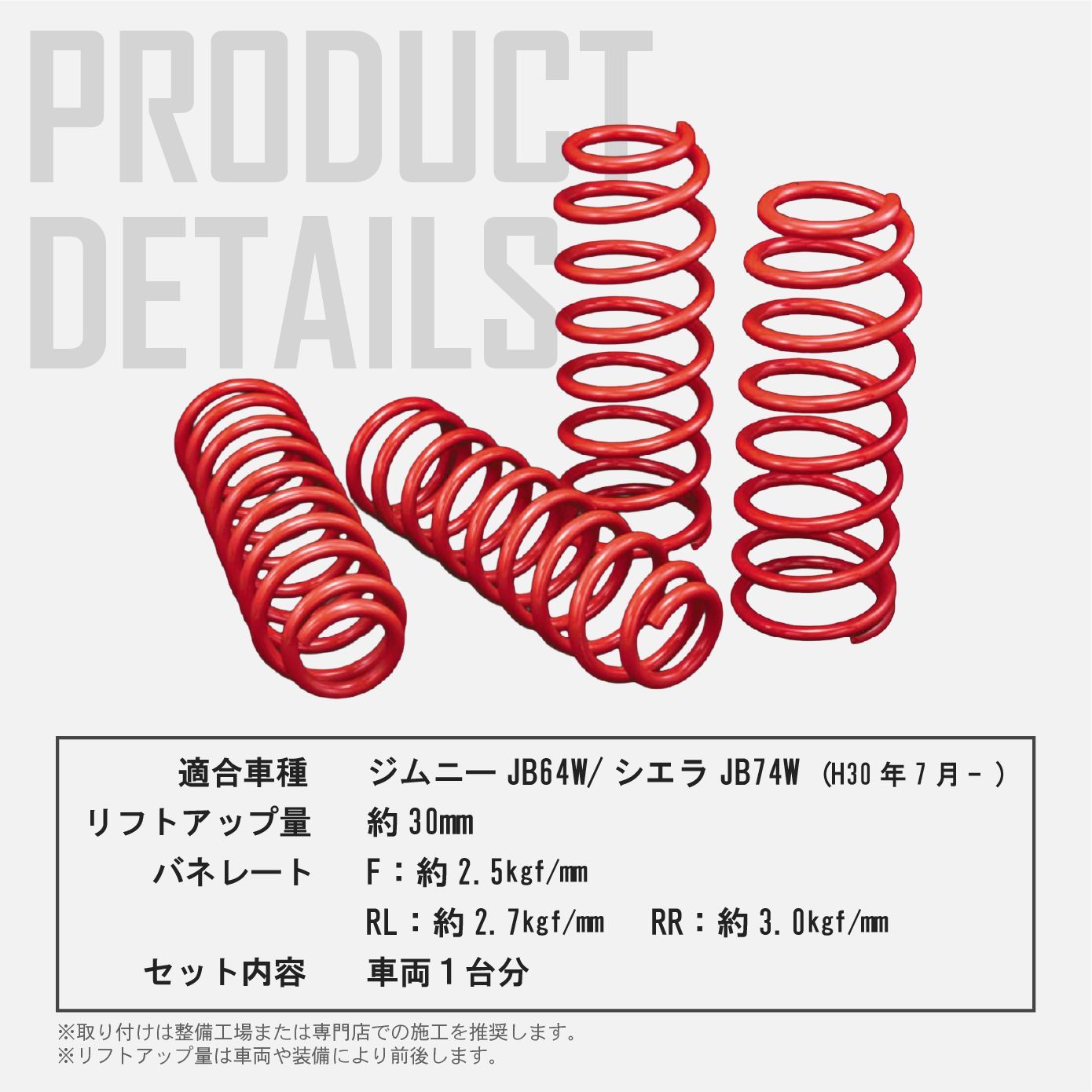 ジムニー JB64W シエラ JB74W リフトアップ コイルスプリング 約30mmUP 30mmアップ 車高アップ リフトアップコイル 64系 74系 ジムニーシエラ パーツ カスタム 4WD オフロード スプリング交換 コイル交換 サスペンション 車高調 足回り カスタムパーツ 外装パーツ タイヤハウス クリアランス拡大 大径タイヤ ワイドタイヤ 装着しやすい 乗り心地 改善 安定性向上 走破性向上 キャンプ アウトドア 林道 未舗装路 雪道 対策 車検対応 純正ショック対応 ジムニー リフトアップキット ジムニー30mmUP JB64 リフトアップ JB74 リフトアップ 64リフトアップ 74リフトアップ オフロードスタイル カスタムSUV 見た目アップ 走破力UP コイル強化 トラベル量UP ジムニー用 リフトアップサス