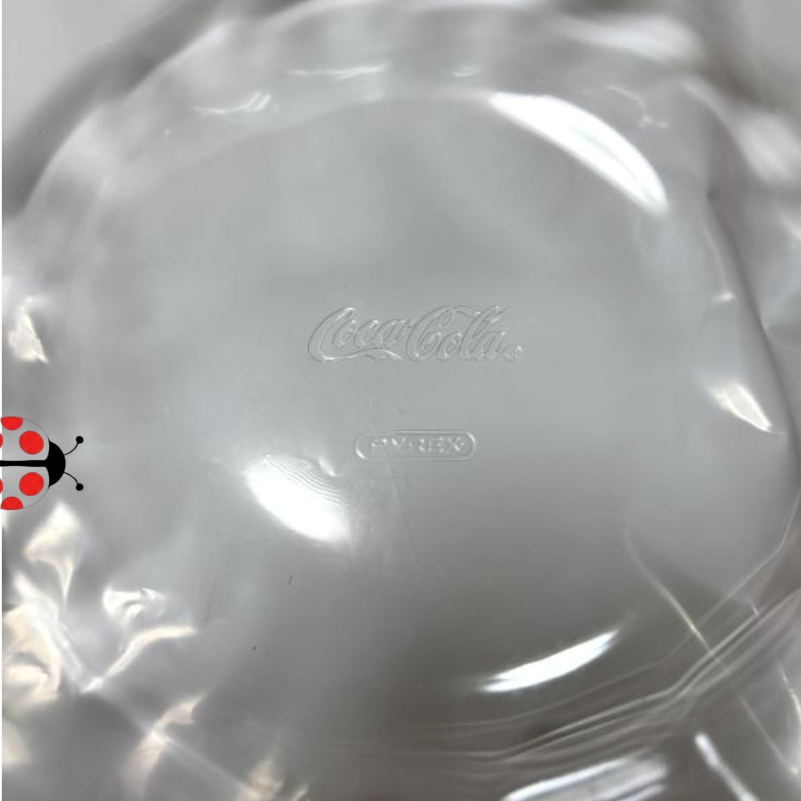 昭和40年代から50年代に非売品のノベルティ品 としてコカ・コーラがキャンペーンで配布したガラス皿です。当時のコカ・コーラは日本市場で販促キャンペーンを積極的に展開しており、グラスや皿などの食器類をノベルティとして提供していました。「耐熱ガラス皿」という点からも、家庭でのオーブン料理やグラタン皿として使えるように企画されており、昭和の食卓に合わせた販促品だったと考えられます。