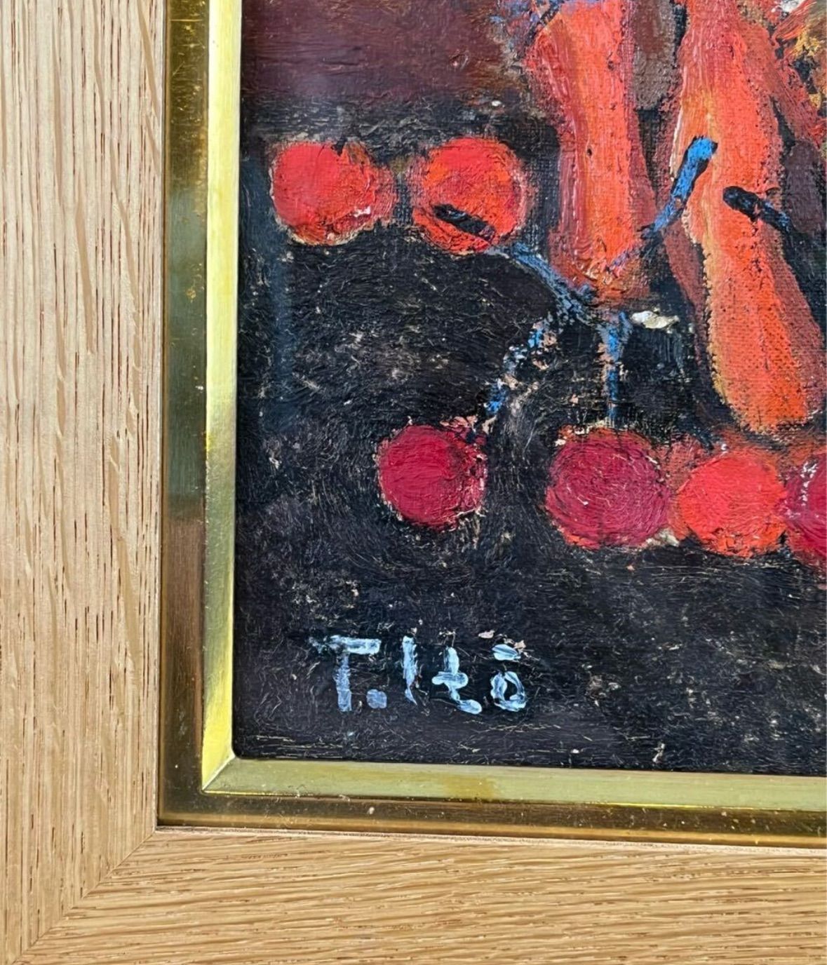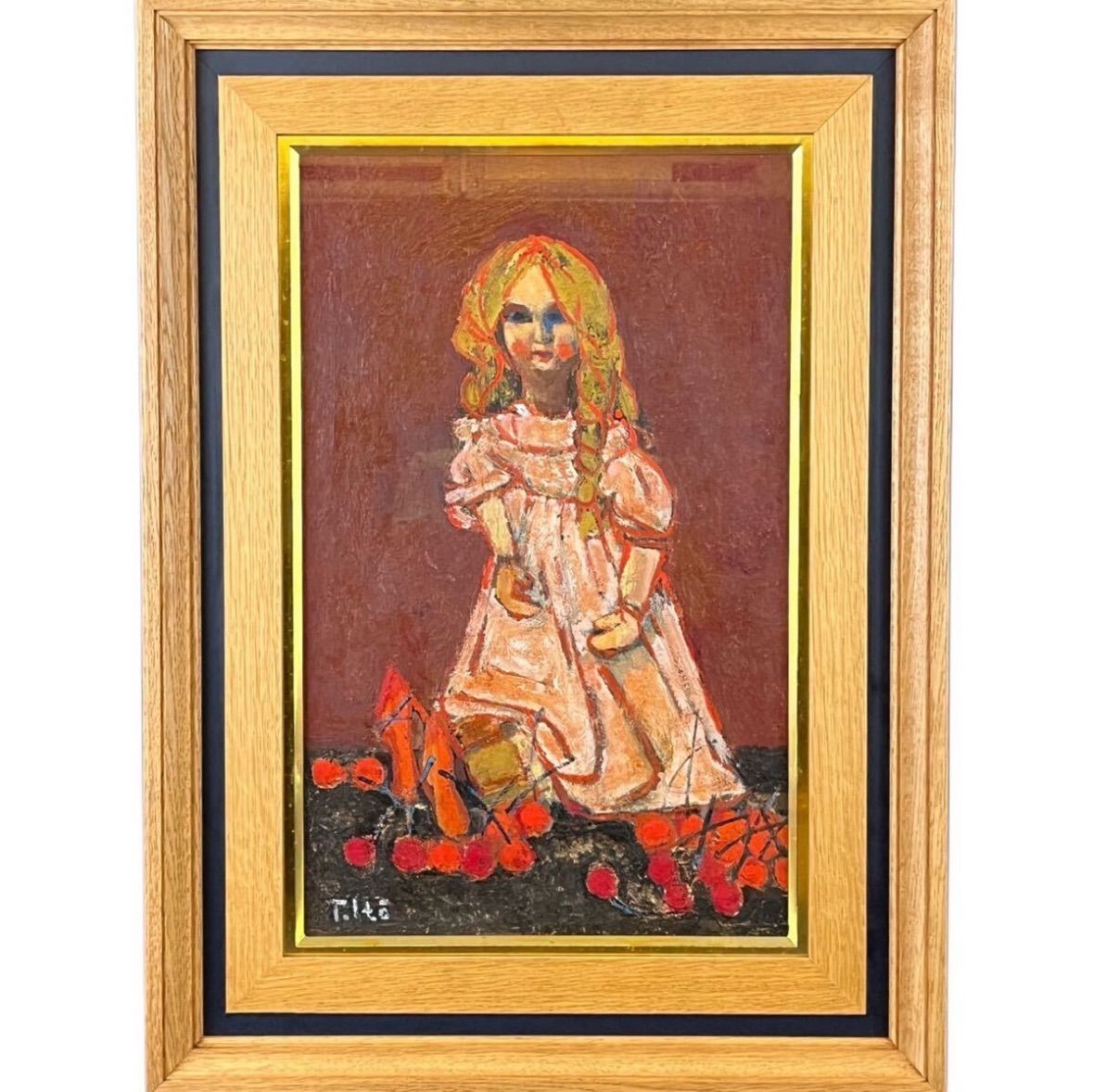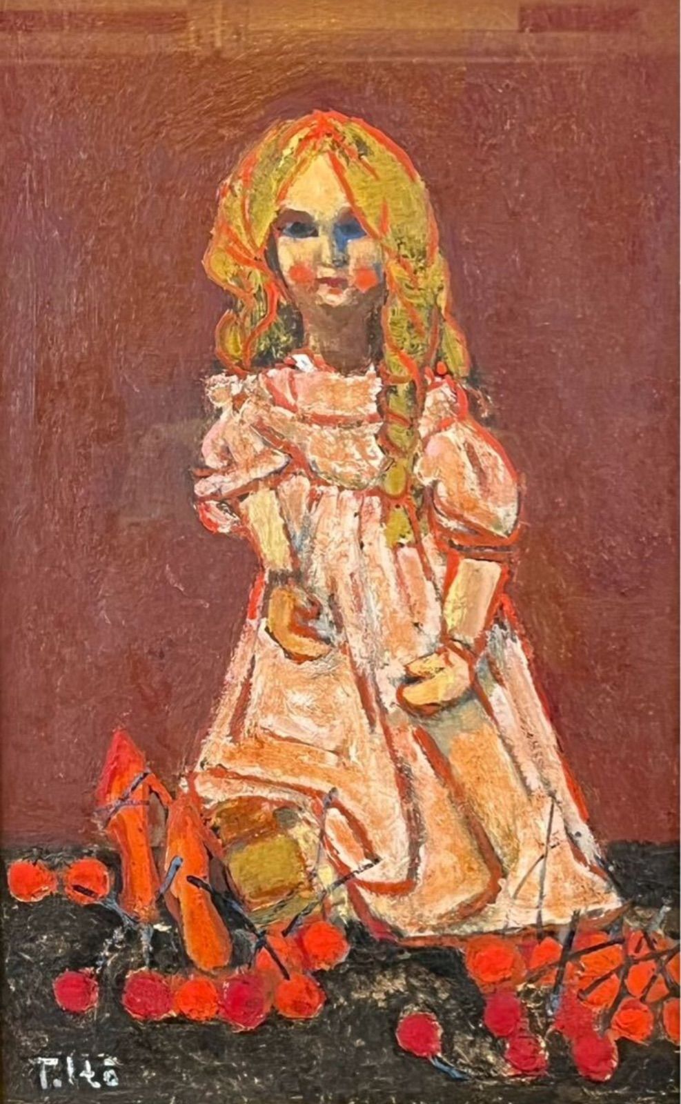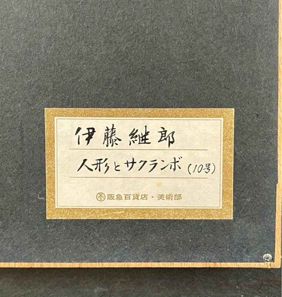 伊藤継郎 「人形とサクランボ」 油彩 M10号 共シール 阪急百貨店取扱 物故巨匠 元京都市立美術大学教授 師 赤松麟作