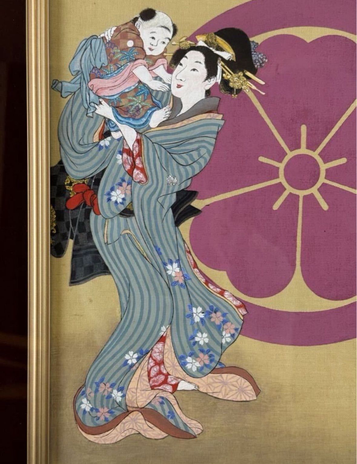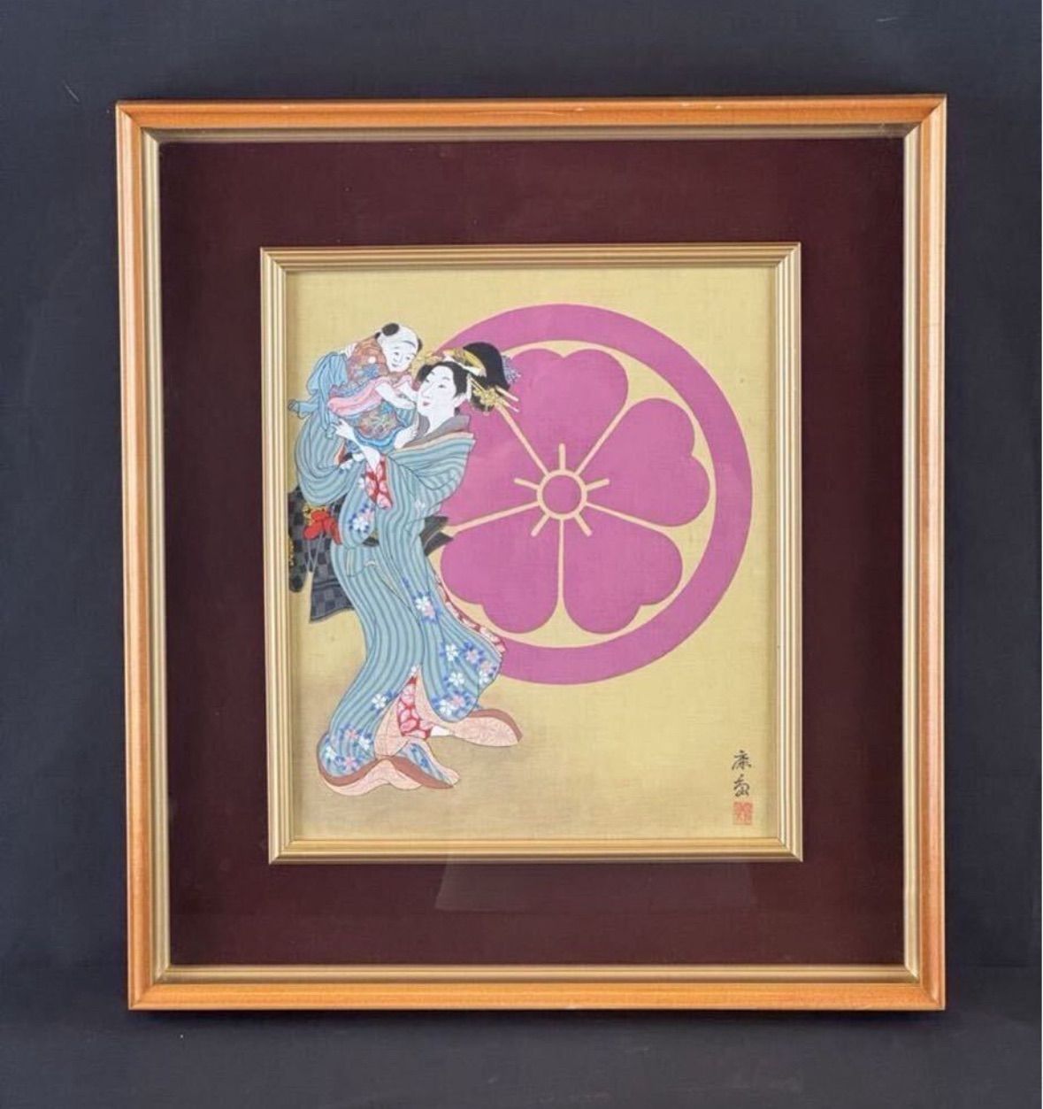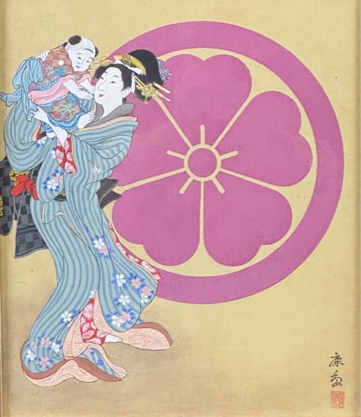 鹿島義雄 「桜紋」絹本に日本画 落款 鹿島紋章工芸 伝統工芸士 京都紋章工芸協同組合副理事長 通商産業大臣表彰/上村松園