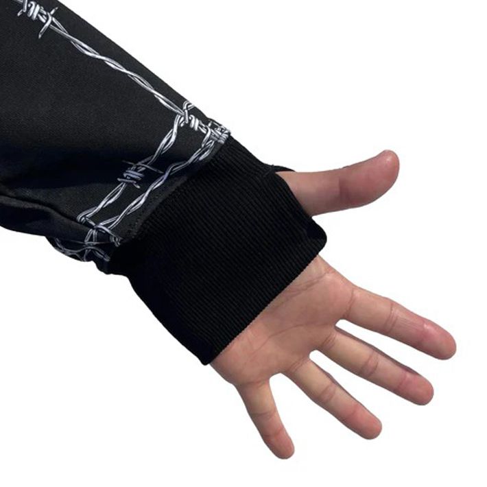 フーディはフードは大きく、身幅があり、リブは指抜き仕様で手首が暖かい仕様です。