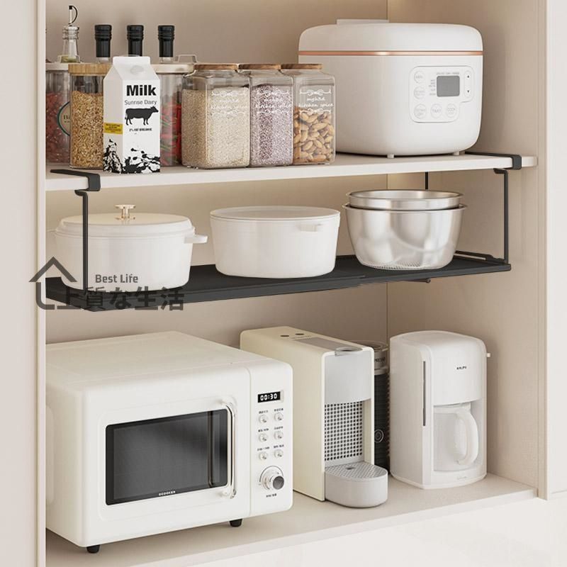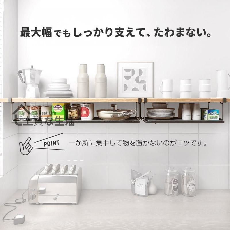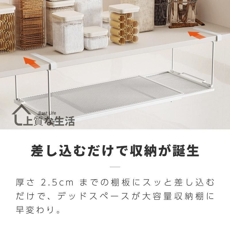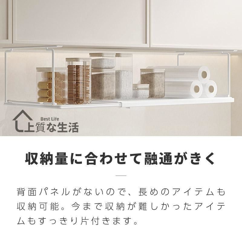 ●新品未使用(モニターの設定や部屋の照明等の具合によって、実際のものと色が異なって見える場合がありますのでご了承ください。)吊り戸棚収納 吊り戸棚収納ラック 吊り戸棚下ラック 伸縮 ワイド スリム 省スペース 戸棚下収納 戸棚下収納ラック 吊り戸棚 吊り下げ棚 キッチン収納 おしゃれ ホワイト ブラック 白 黒 賃貸でも設置可能な吊り下げ式収納ラックは、吊戸棚や棚板の下などのデッドスペースを有効活用できるアイテムです。