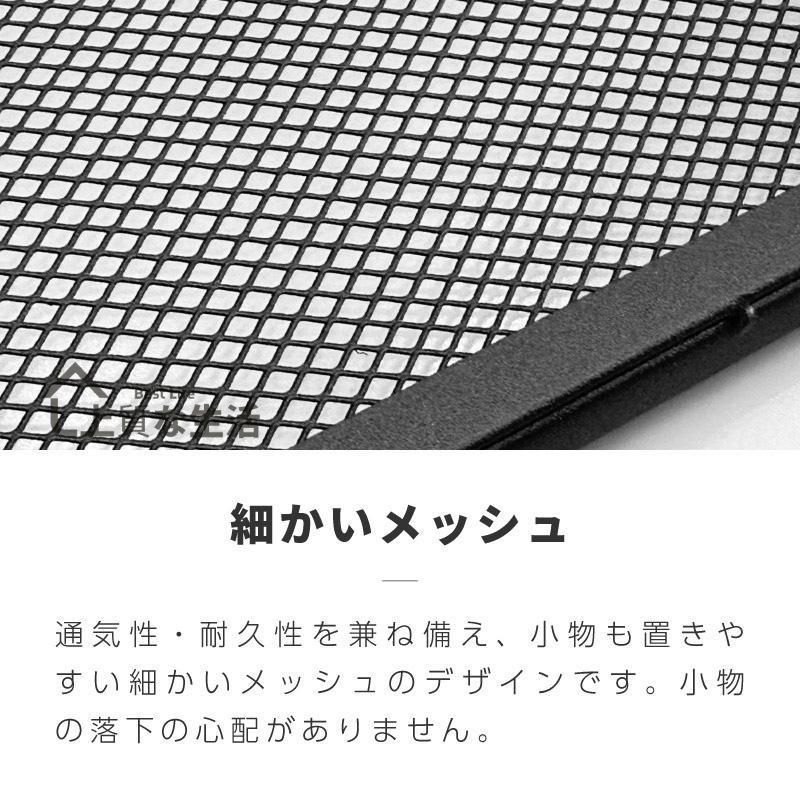 メッシュデザインで通気性と耐久性に優れ、小物の落下も防ぎます。