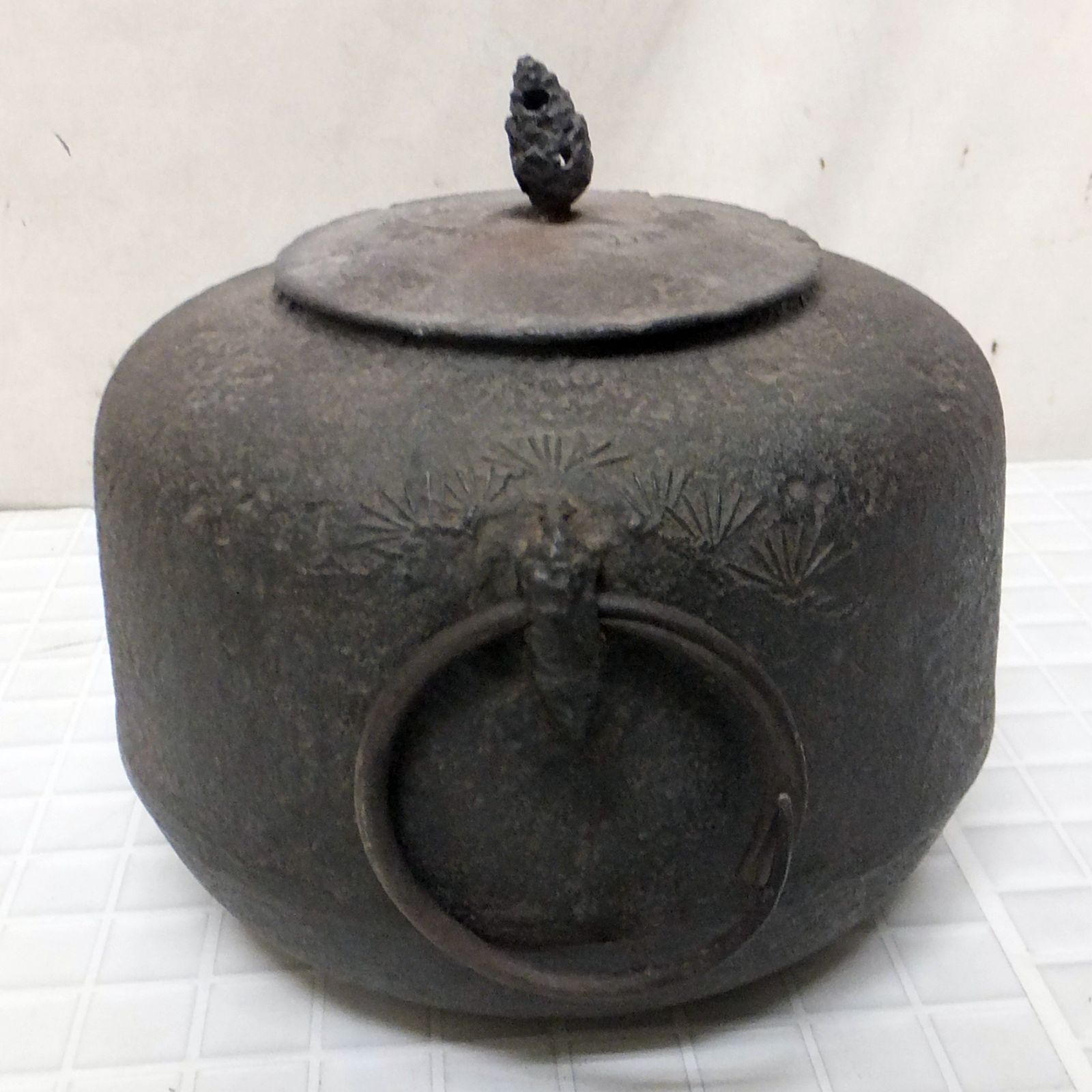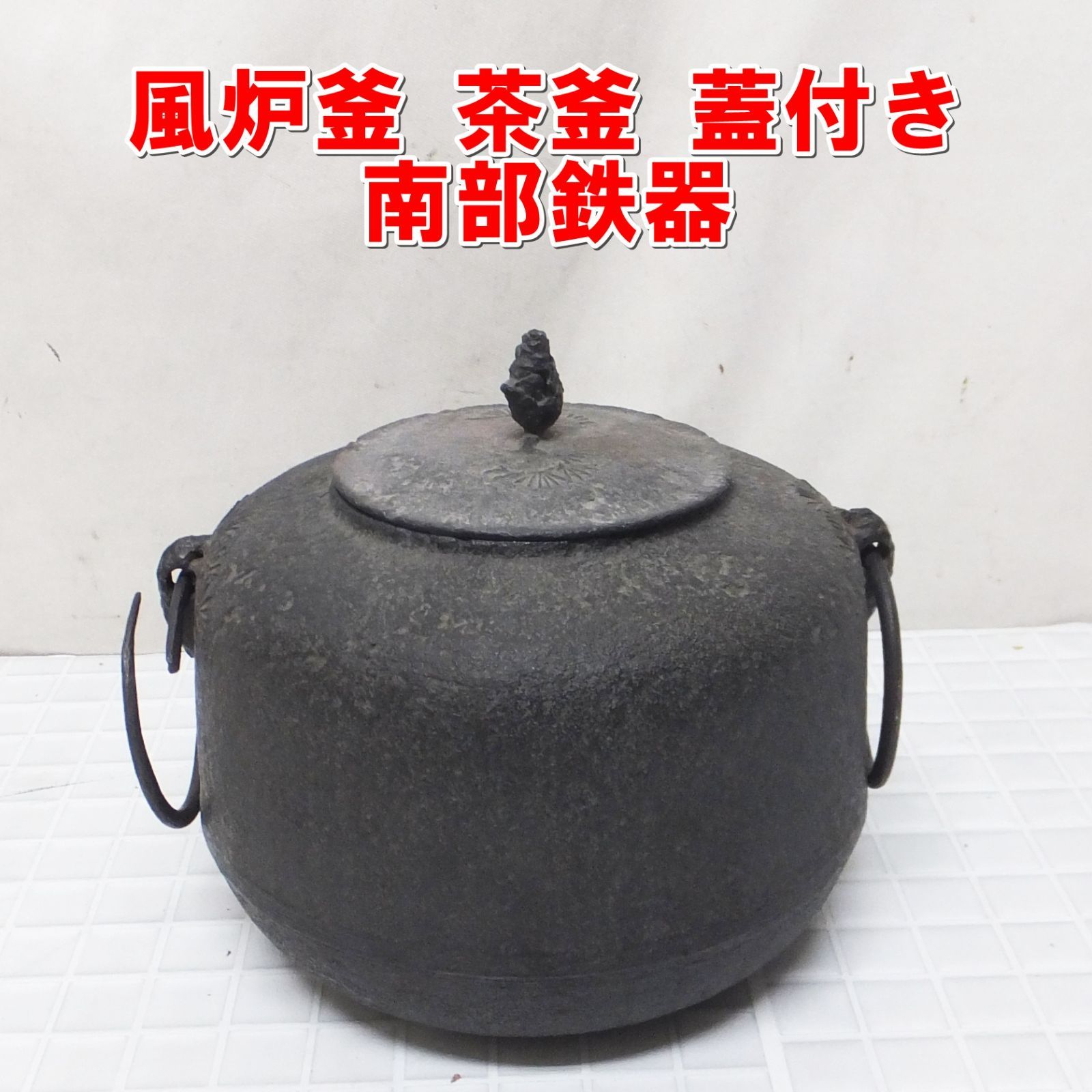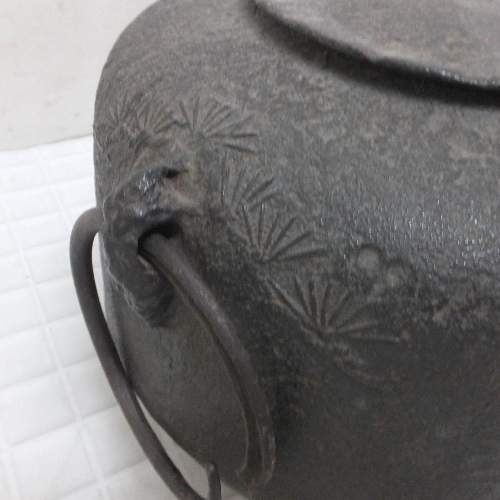 R615【茶道具】風炉釜 茶釜 蓋付き 南部鉄器 /10