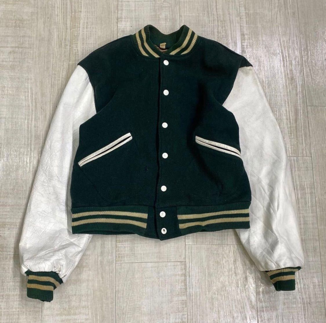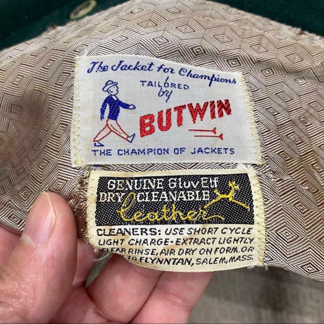 70s BUTWIN Baseball Jacket バトウィン ベースボール ジャケット レザー × メルトン ビッグ サイズ ヴィンテージ スタジャン SIZE 42 612
