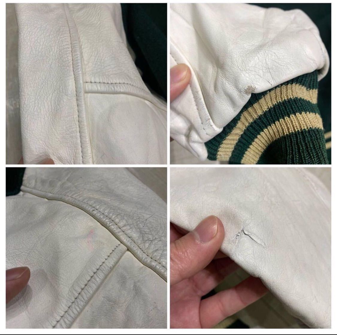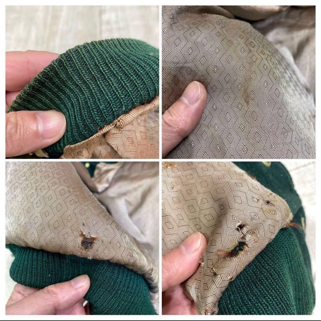 【状態】全体的にシミ、ヨゴレ、色褪せ、ヤブレを補修した跡、レザー部分にヨゴレ、ヒビ割れが有り、うっすら甘いタバコの匂いがします。ヴィンテージ、古着に理解有る方のご入札をお願い致します。(状態等再度画像にてご確認ください)