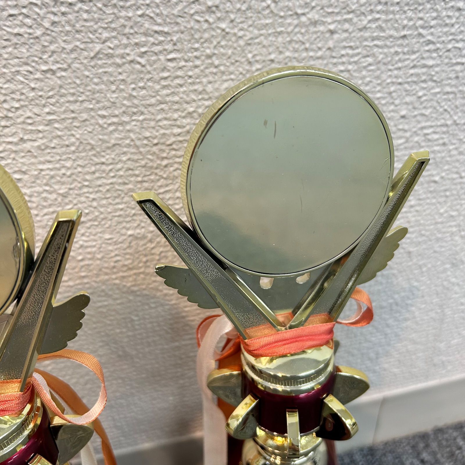 リボンは2本とも色褪せや毛羽立ちがあります。