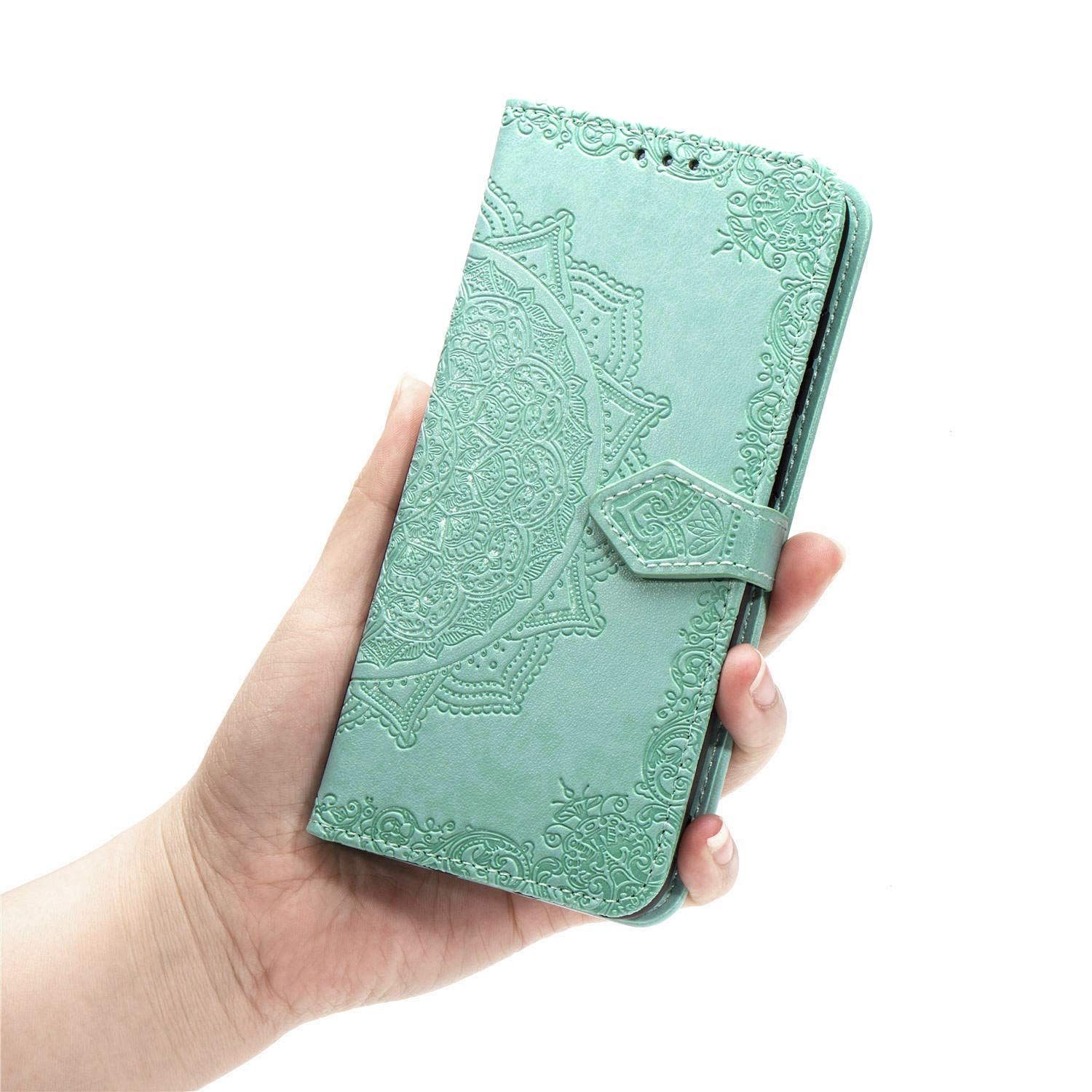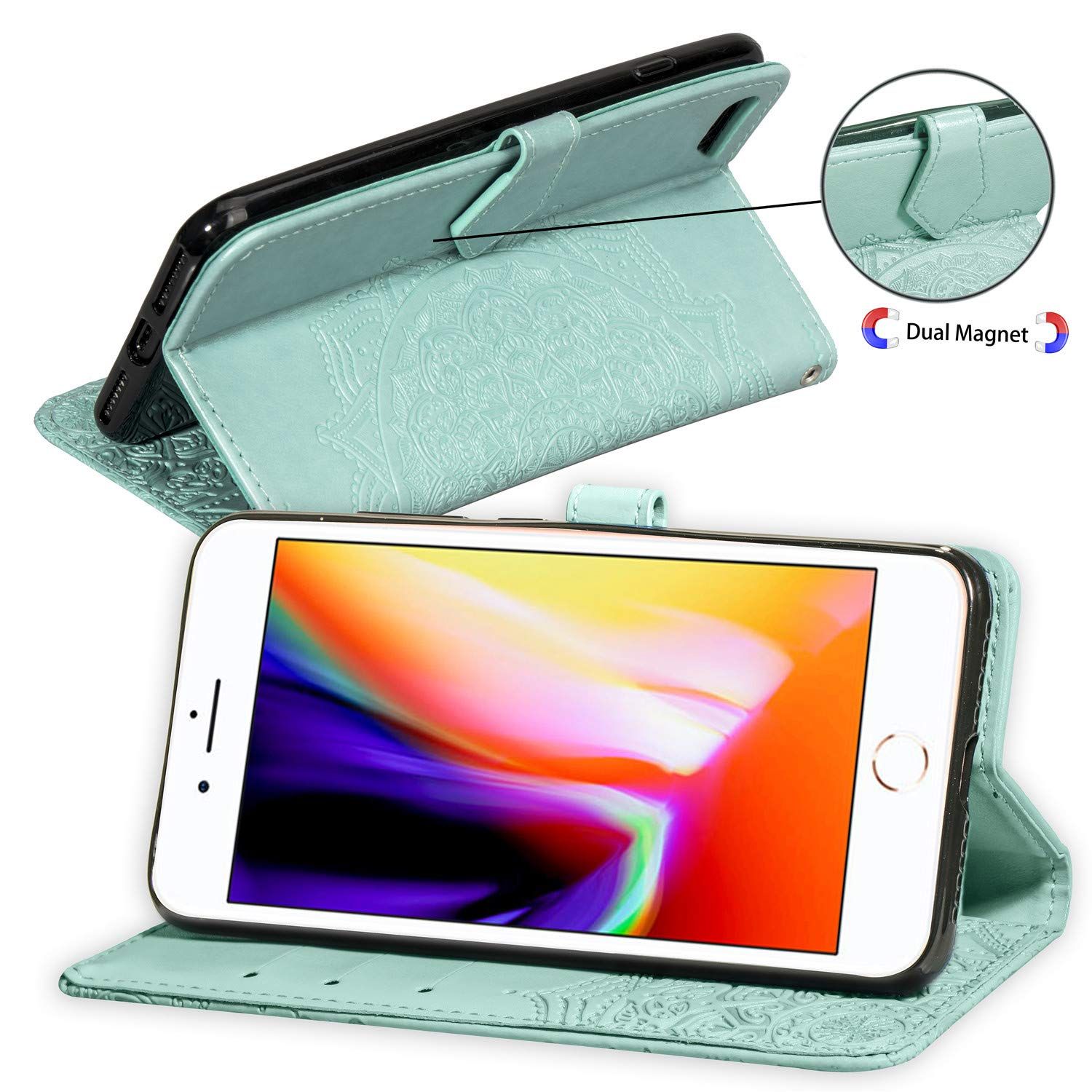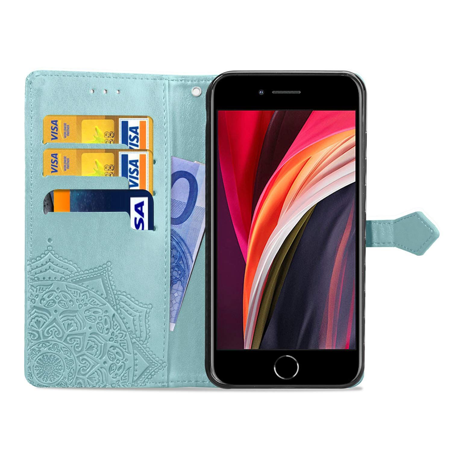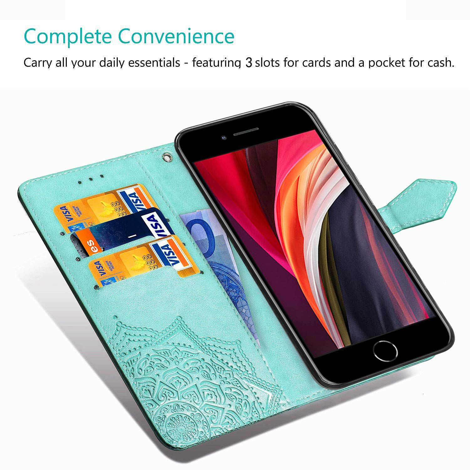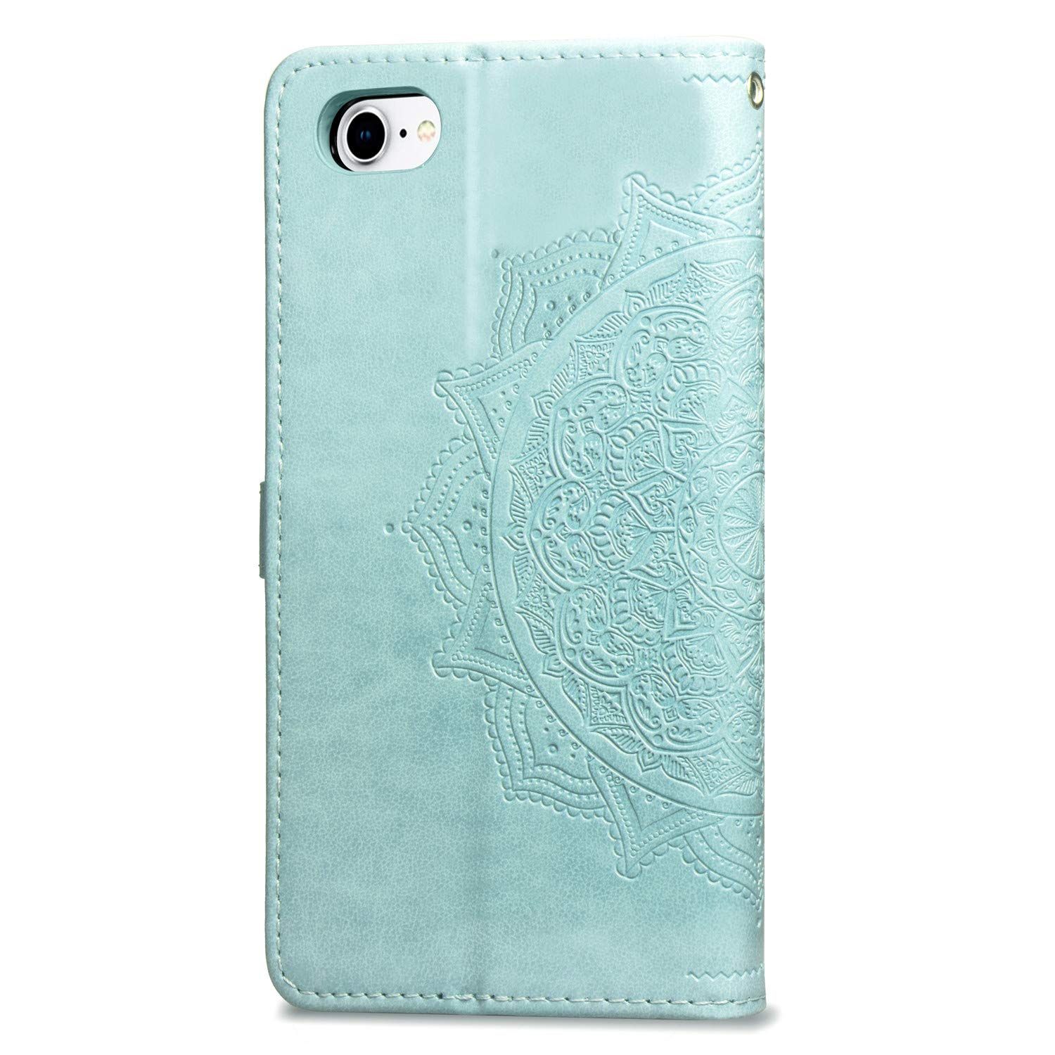 に適用するiPhone SE 第3世代 (2022) / iPhone SE 第2世代 (2020) / iPhone8 / iPhone7 ケース 手帳型 ノートブック型携帯電話保護カバー多機能携帯電話ホルスター財布携帯電話ホルダーバンプパターンテクスチャ耐久性摩擦耐性携帯電話ケース男性と女性に適した多色オプション (マンダラグリーン)