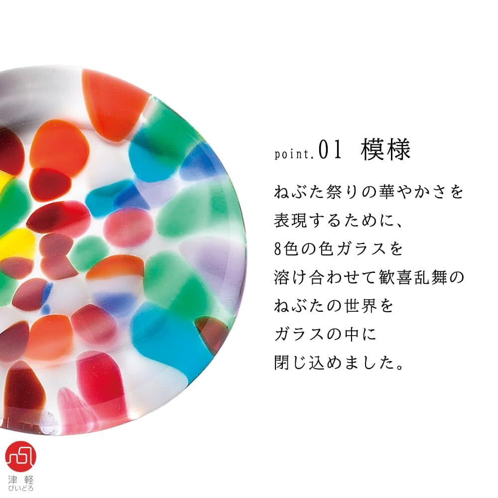 青森の勇壮華麗な火祭り「ねぶた」を8色の色硝子で表現した津軽びいどろの箸置き。