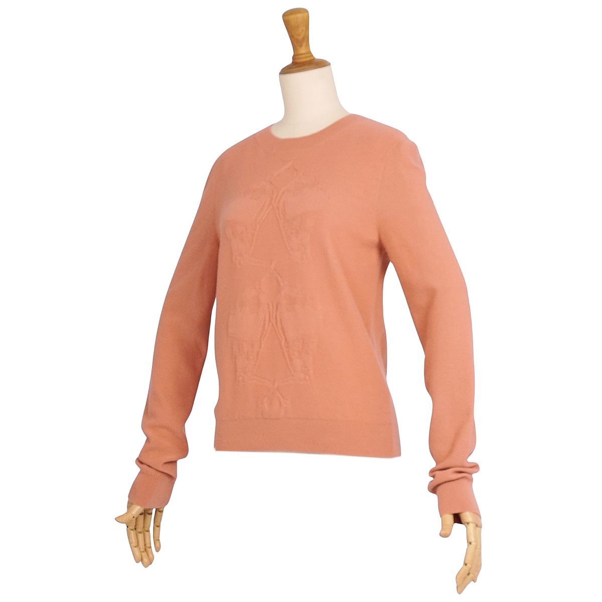 極美品 エルメス HERMES ニット 21AW セーター ロングスリーブ ウール カシミヤ トップス レディース 34 サーモンピンク