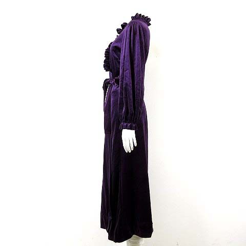 【商品名】IT’S A Charm USA製 カーディガン ベロア ベルベット カシュクール フリル ロング ウエストリボン ギャザー 長袖 M 紫 パープル