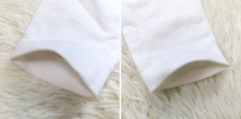 一般的なスウェットほどの程よい生地厚で、秋冬から春先まで長くお使いいただけます。