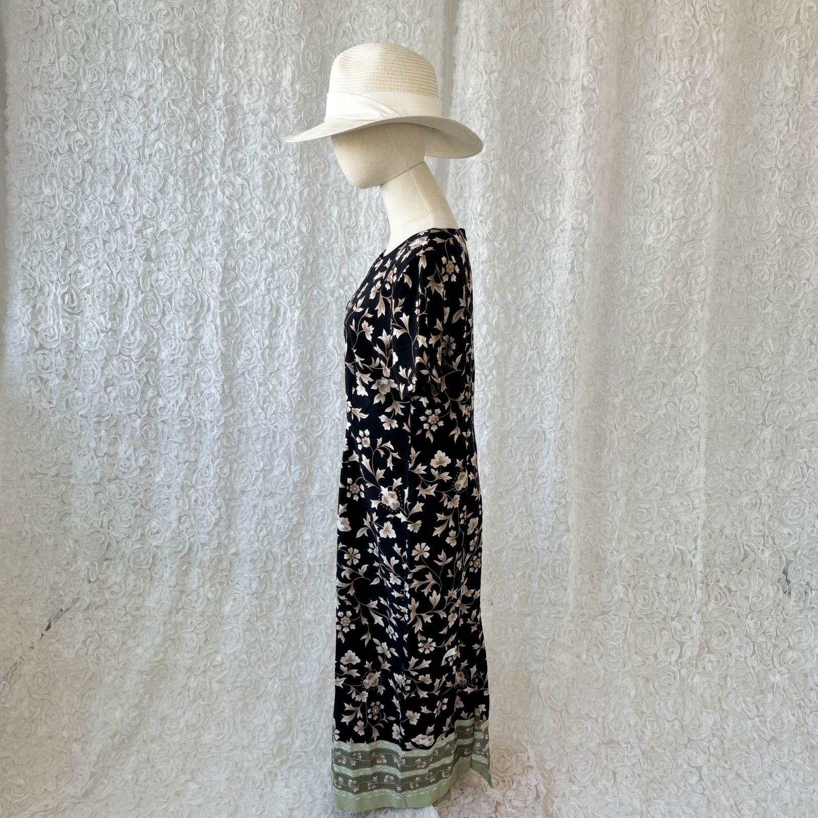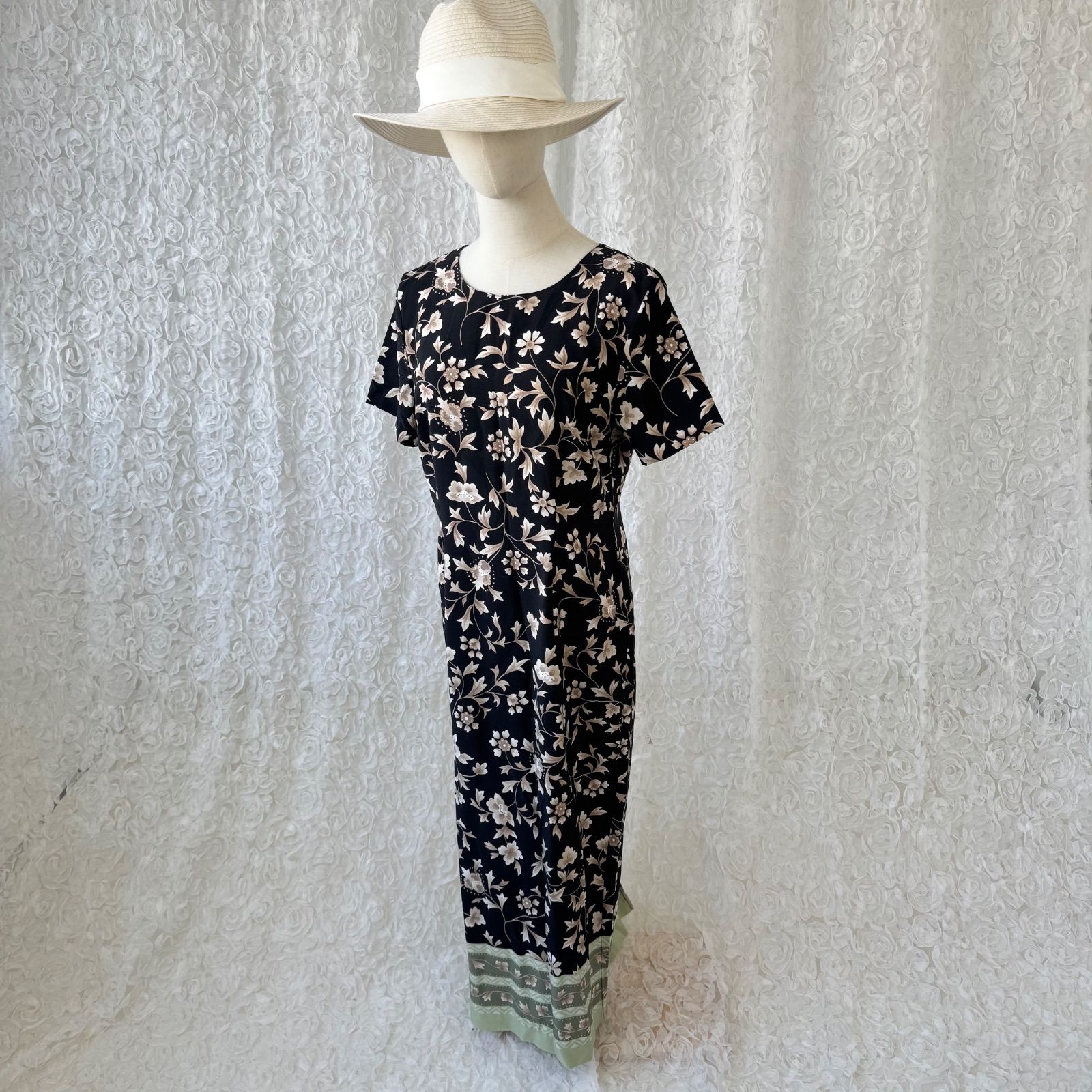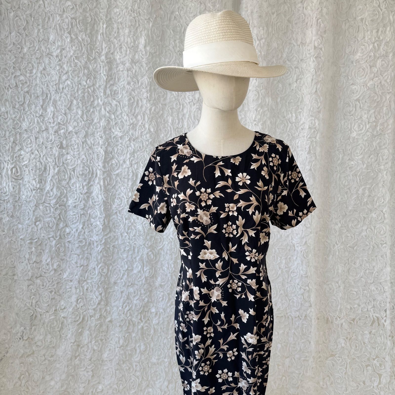 上品なボタニカル柄が大人っぽく、さらりと着られるロングワンピース。