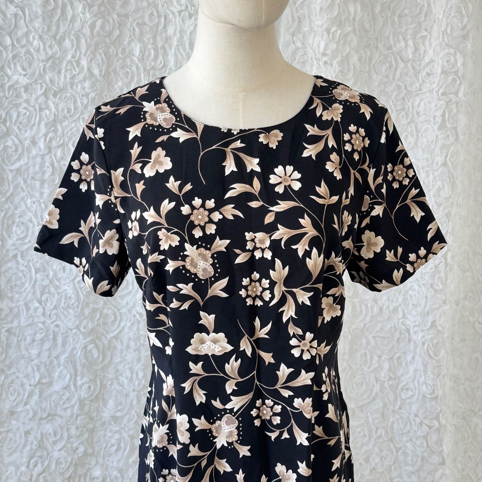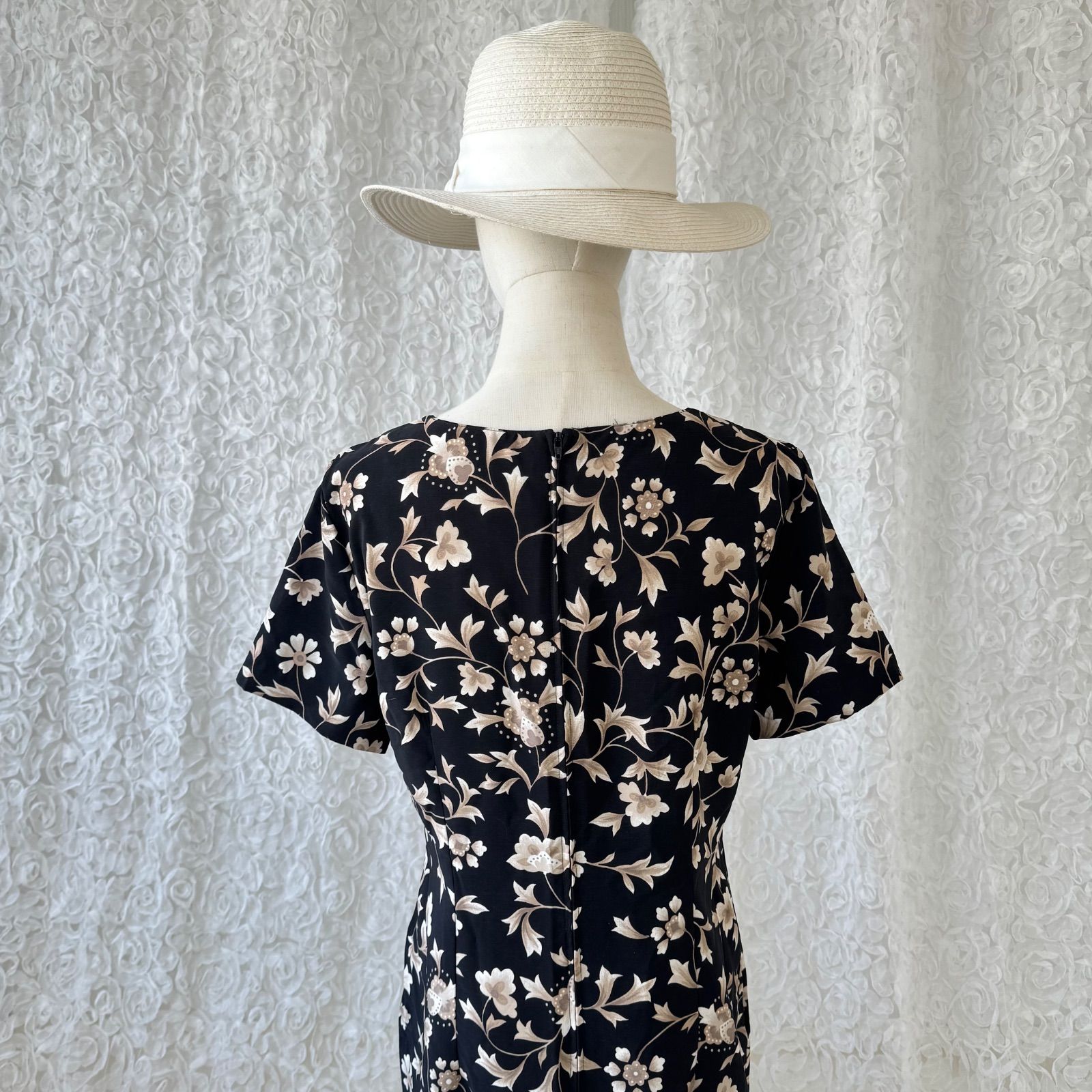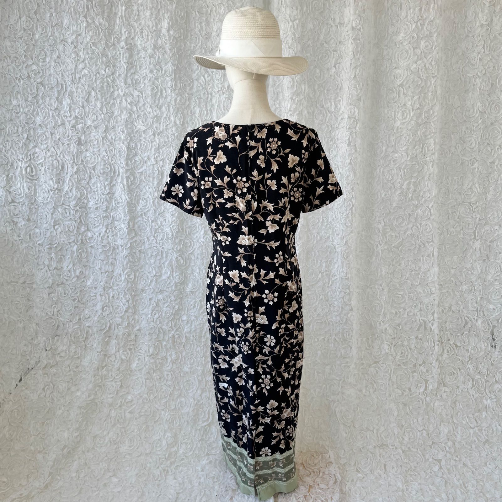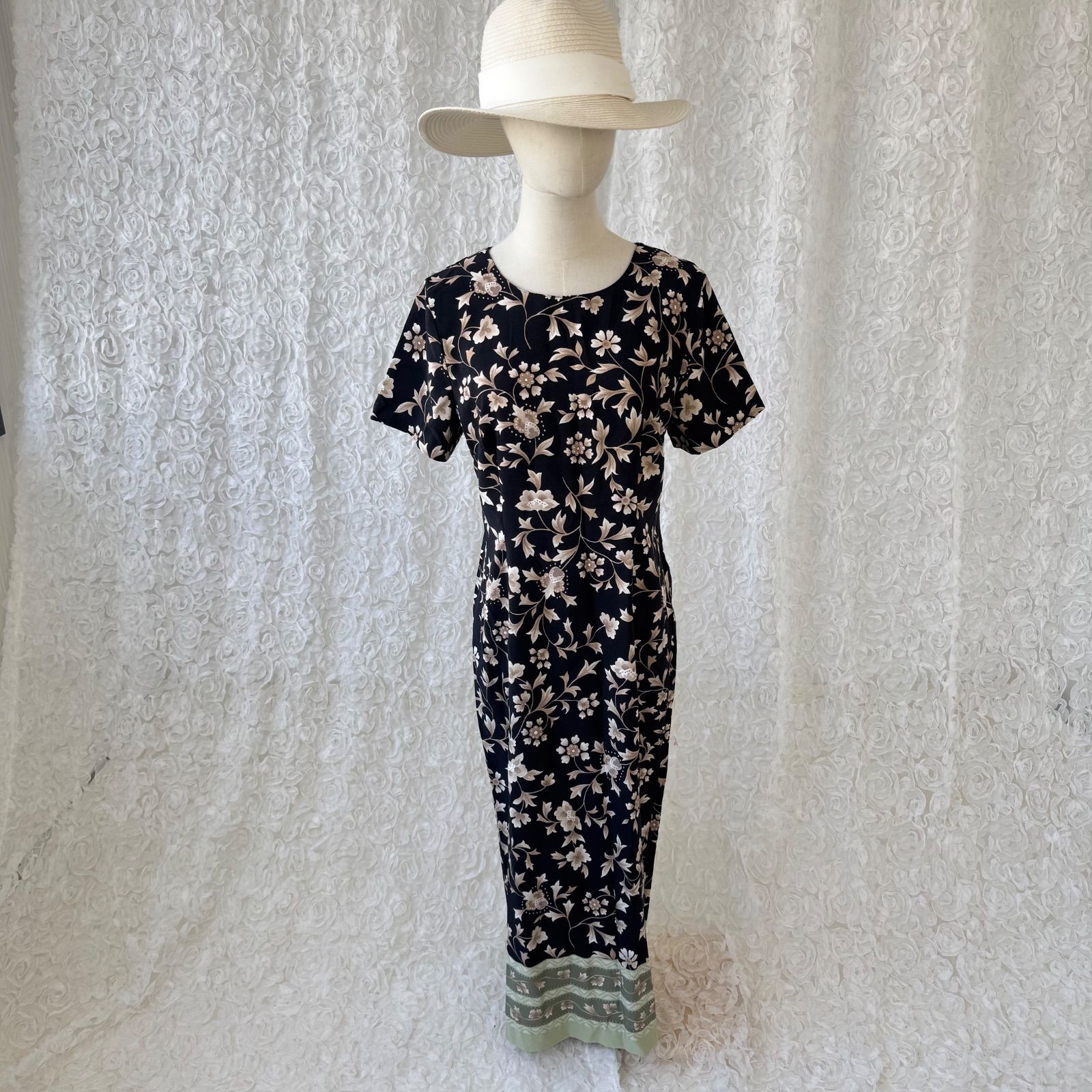 上品なボタニカル柄が大人っぽく、さらりと着られるロングワンピース。