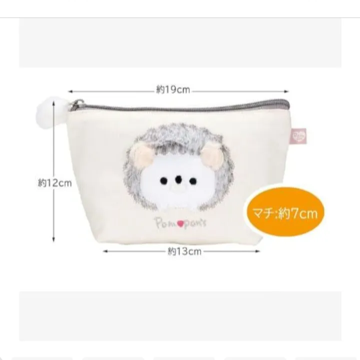 スケーター マチ付きフラットポーチ お出かけ小物入れ Pompon's ハリネズミ