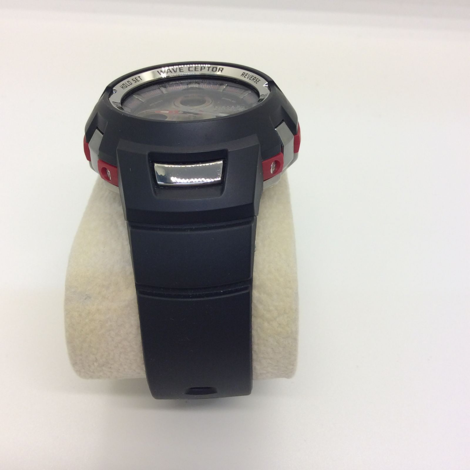 G-SHOCKで初めてアナログムーブメントとタフソーラー(ソーラー充電システム)、そして電波受信機能を組み合わせたモデルです。