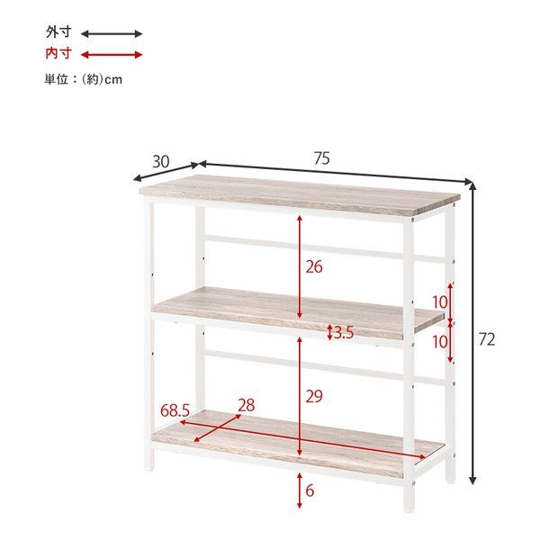 ■サイズ:(約)幅75×奥行30×高さ72cm