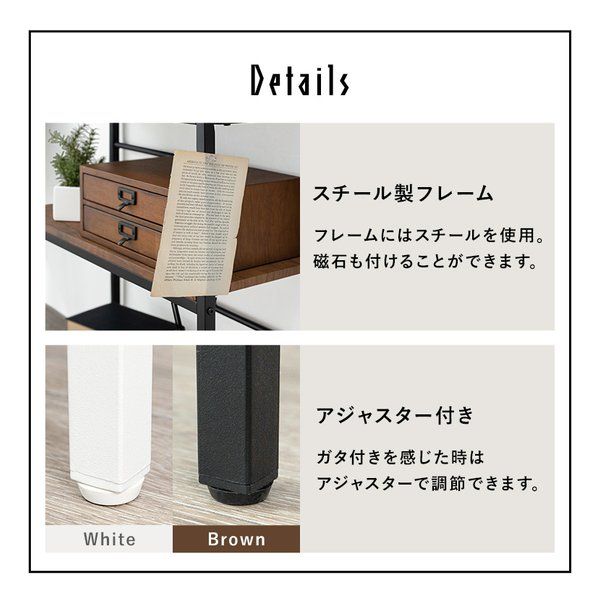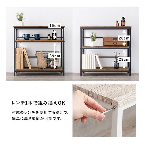 木目調の棚板にアイアンフレームを合わせたシンプルなデザインのオープンラック。