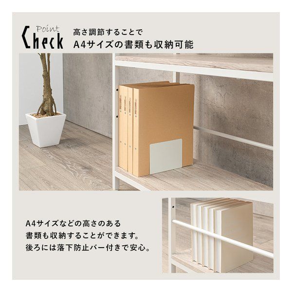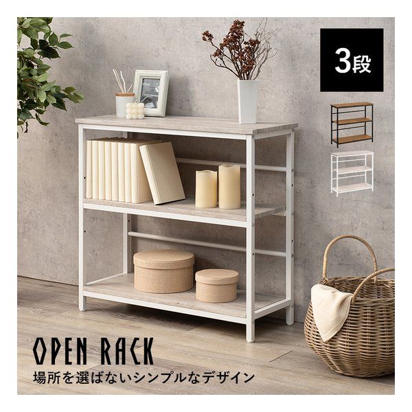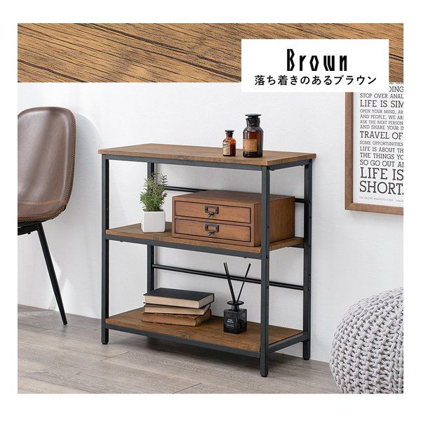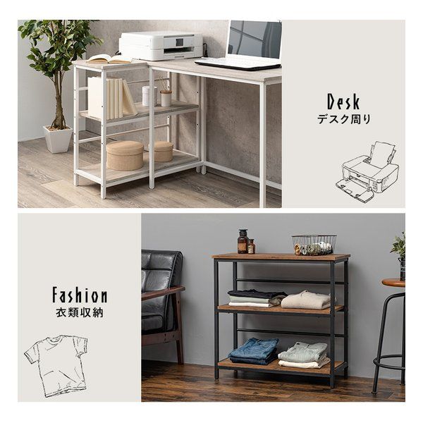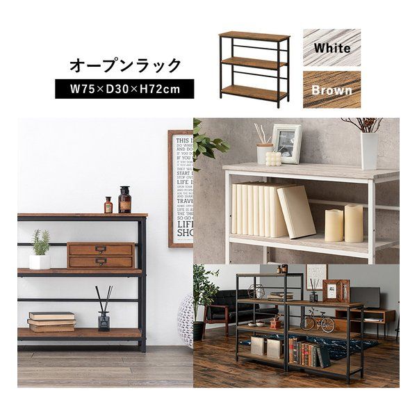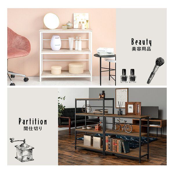 ●木目調の棚板にアイアンフレームを合わせたシンプルなデザインのオープンラック。