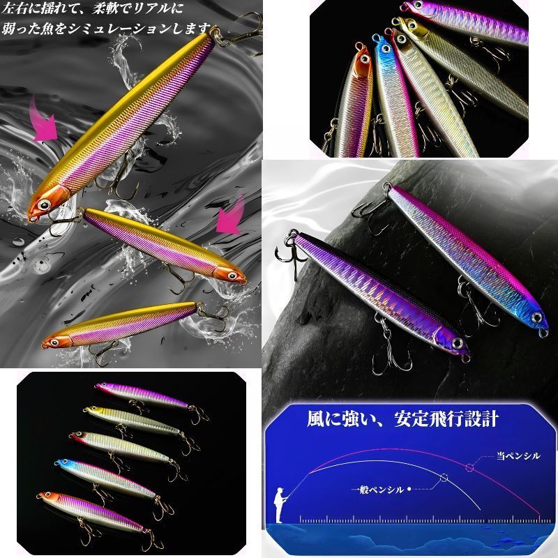 釣果を引き出すテクニカルな設計で、青物・シーバス・ヒラメなど様々なターゲットに対応!得な5本セット!